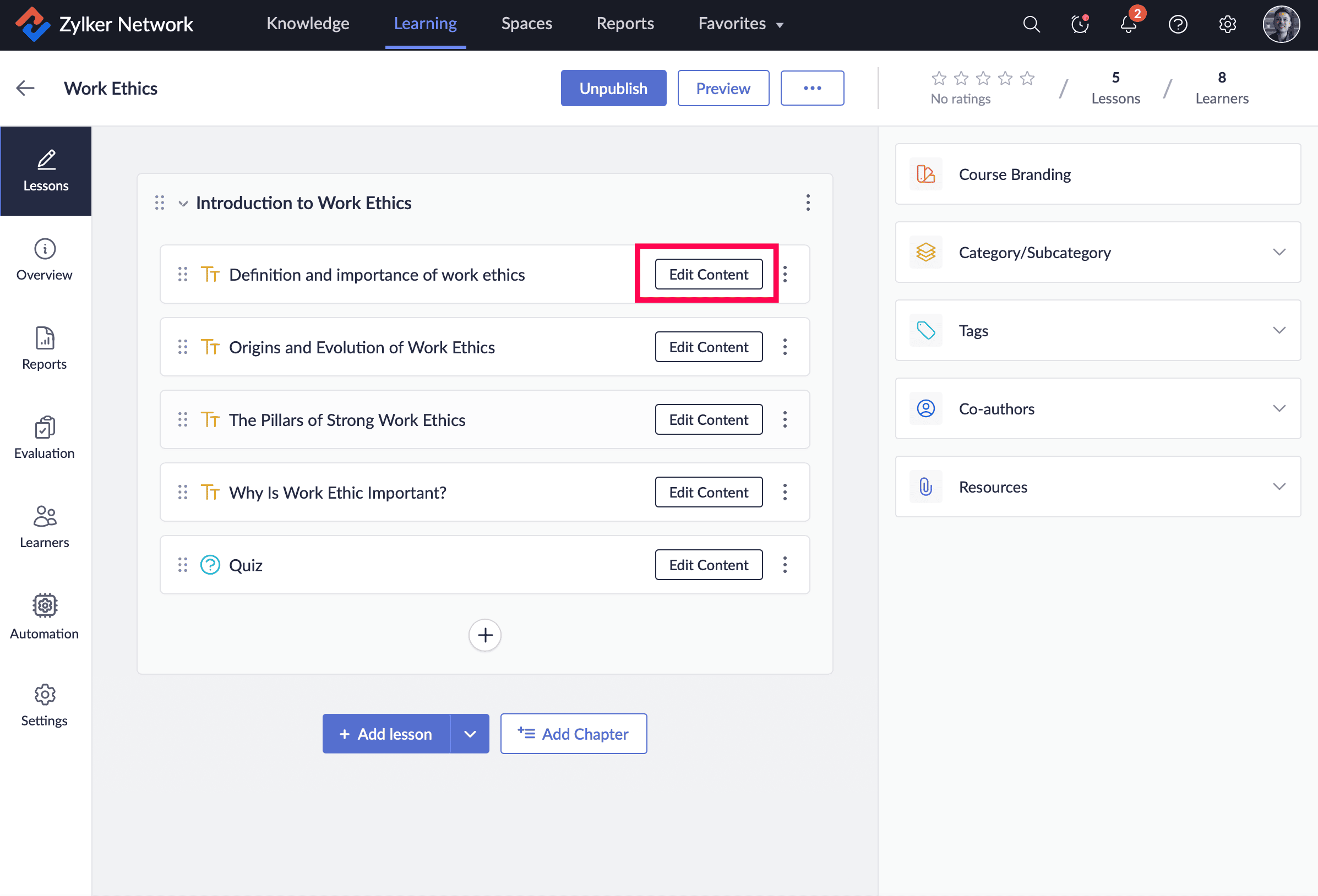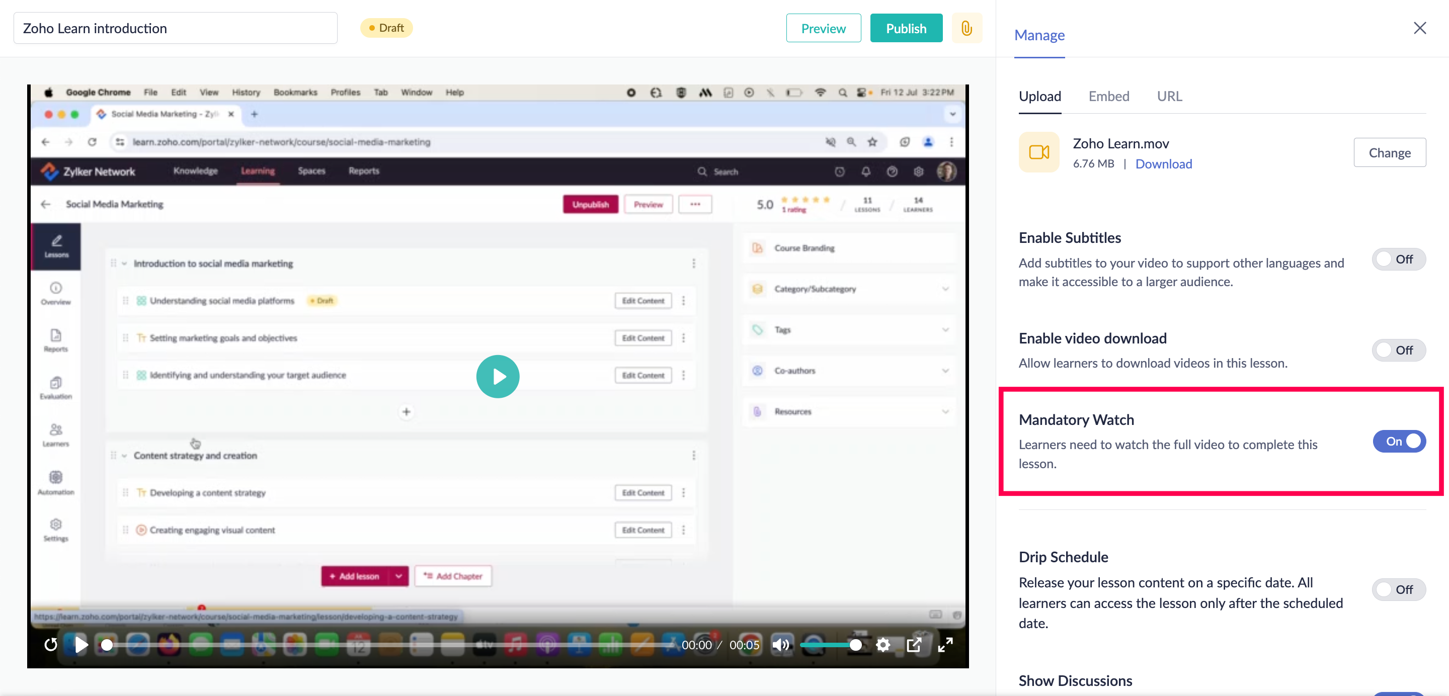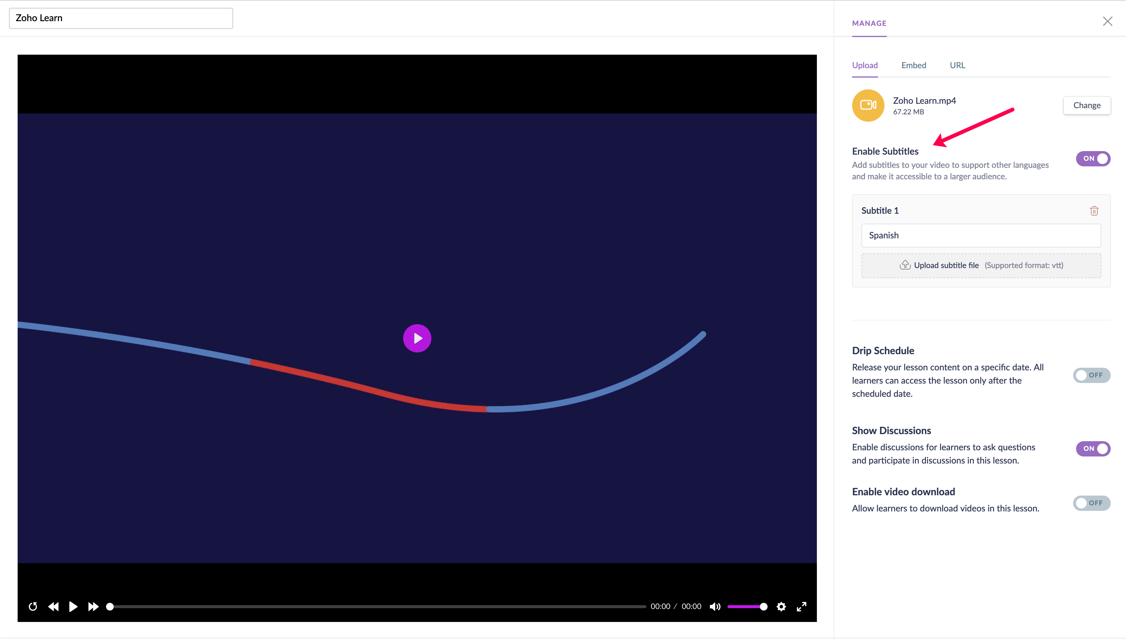 受講者は、レッスン閲覧時に添付ファイルアイコンをクリックすることで添付ファイルを表示できます。