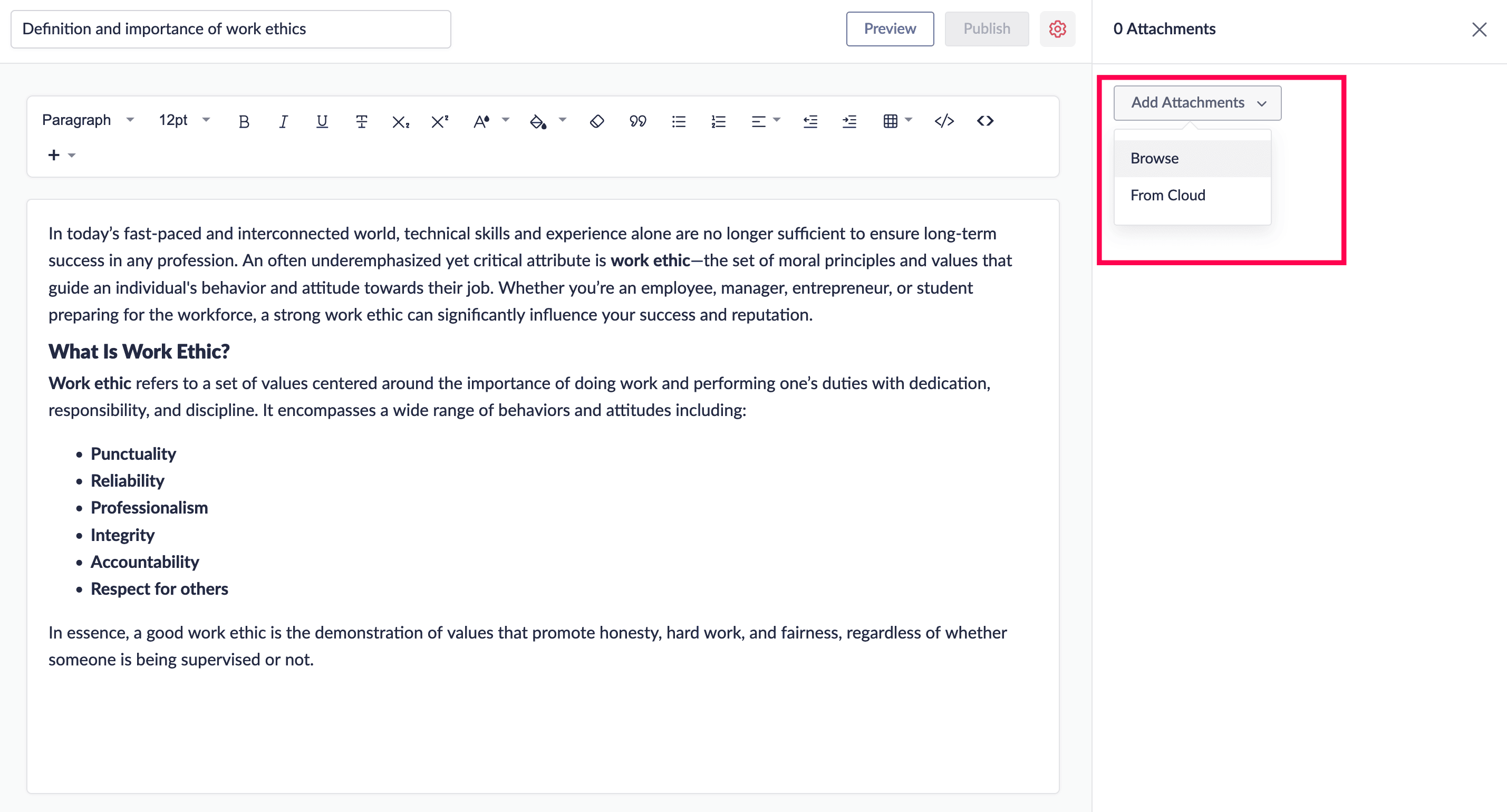 追加する 添付ファイルのドロップダウンをクリックし、添付ファイルの追加元を選択します。