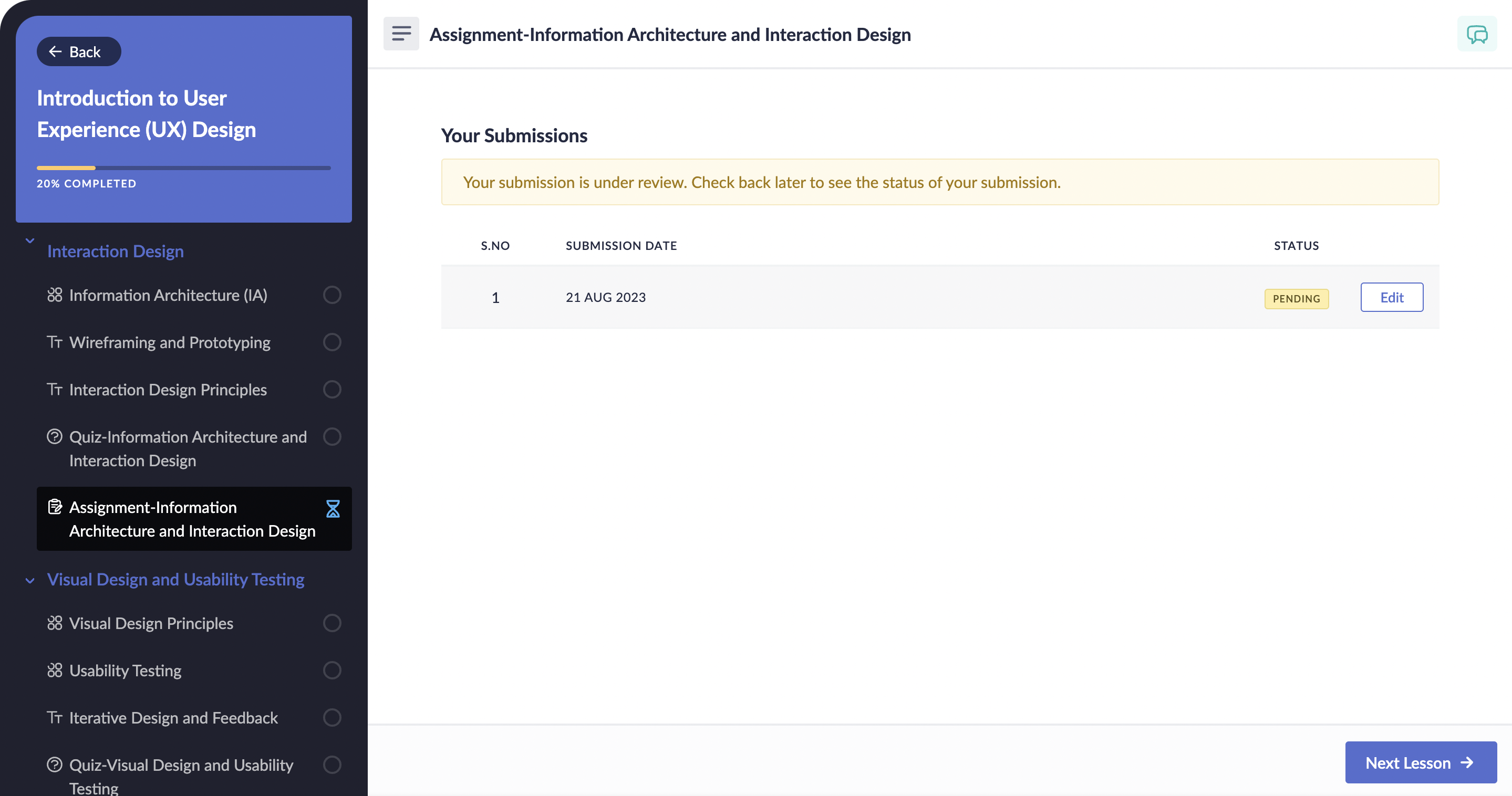 2. コース修了に必須の課題については、次のレッスンに進むには提出内容が承認済みである必要があります。