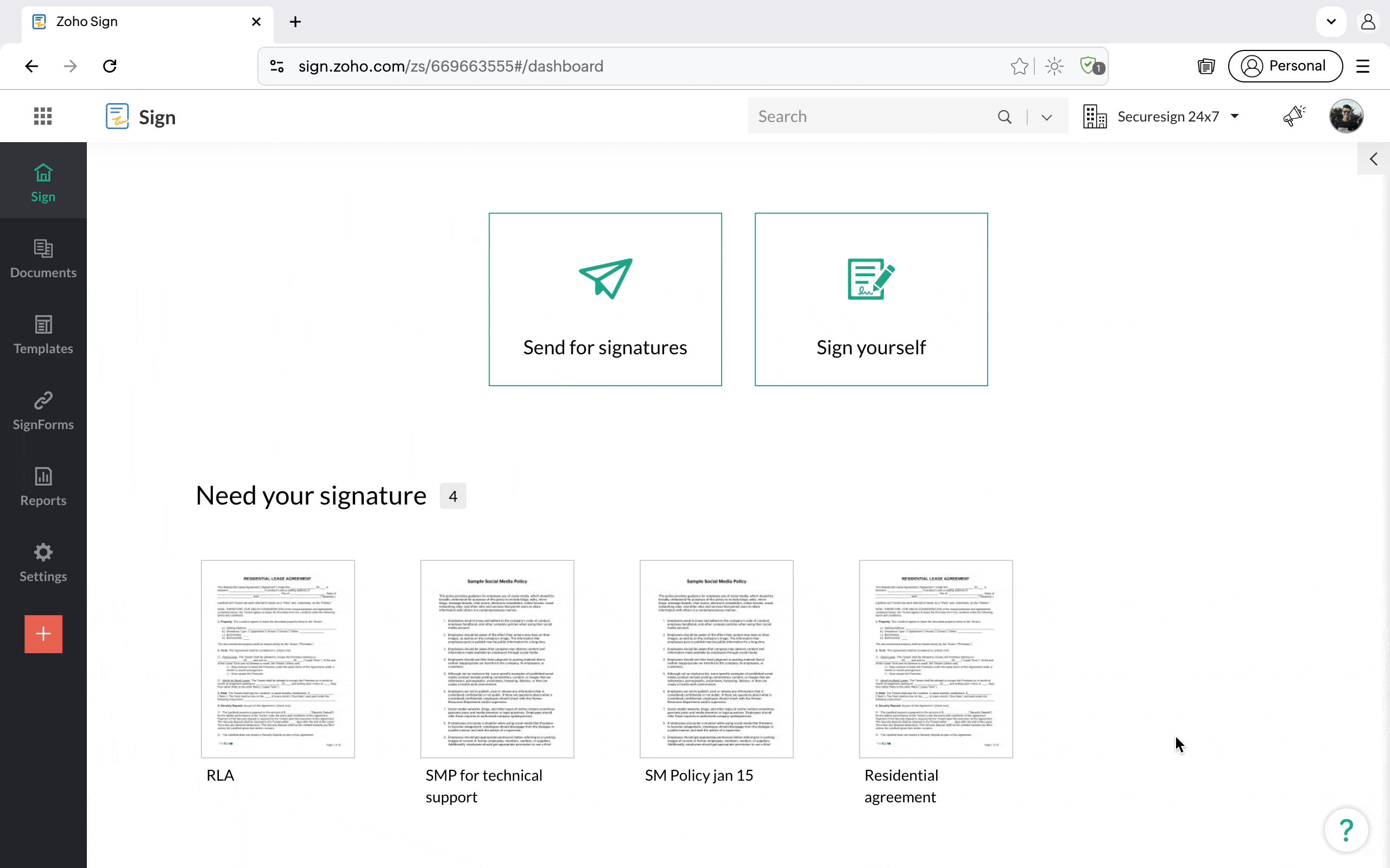 1. 署名のためのドキュメントを送付する