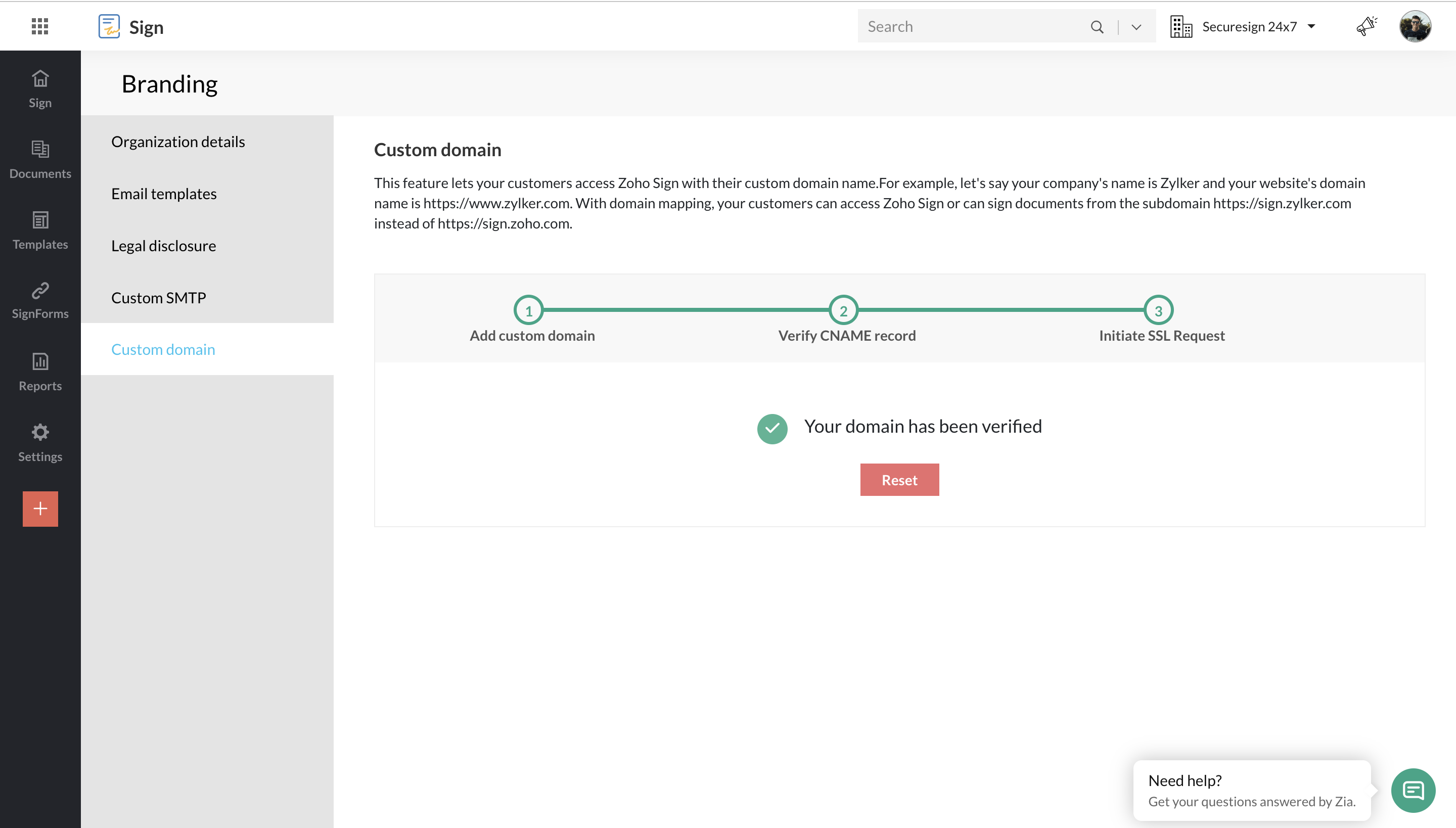 Zoho Signのカスタムドメイン