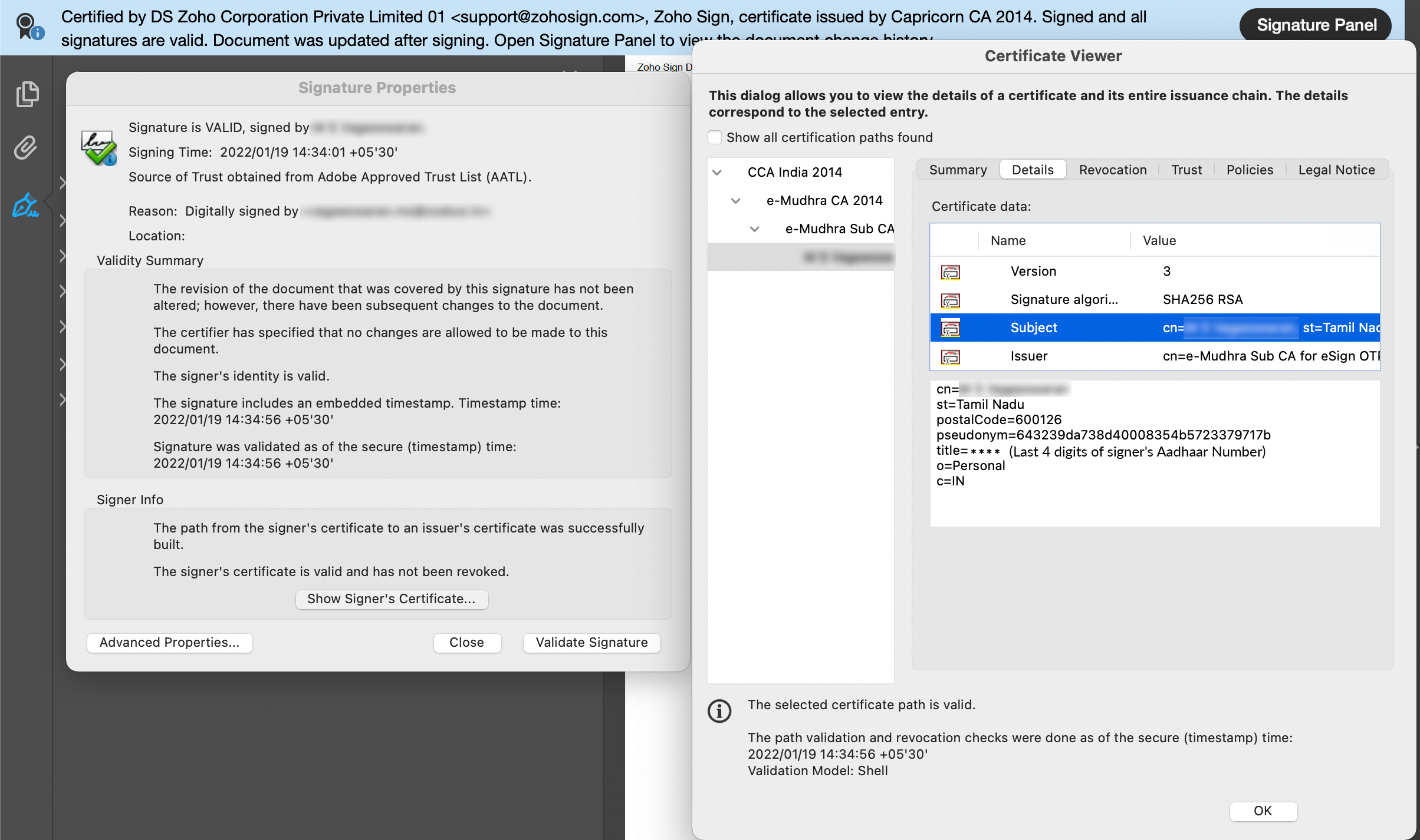注:これらの文書は、Aadhaarに基づいた署名者の個人証明書によって署名されており、最高レベルの法的保証を持っています。