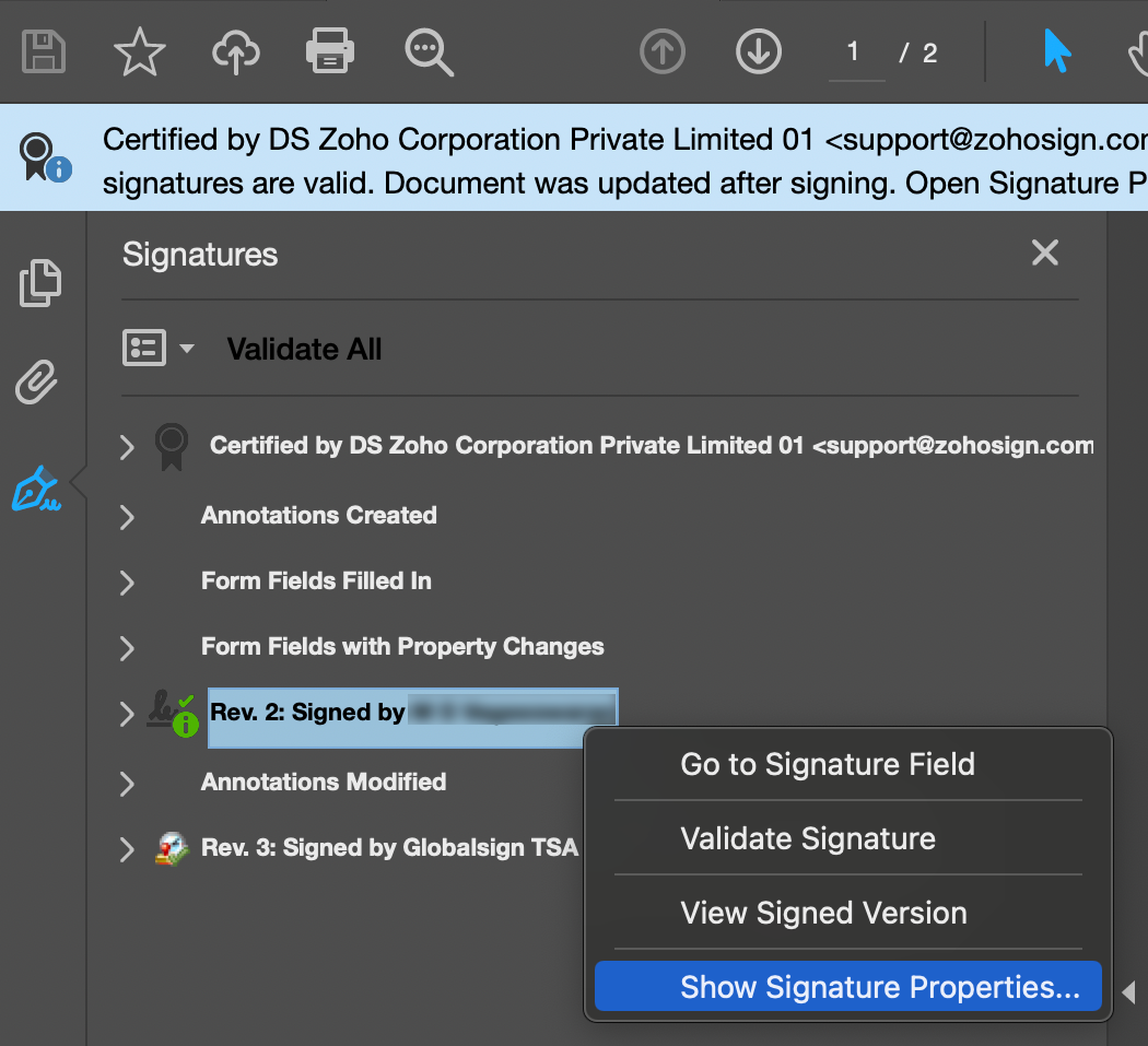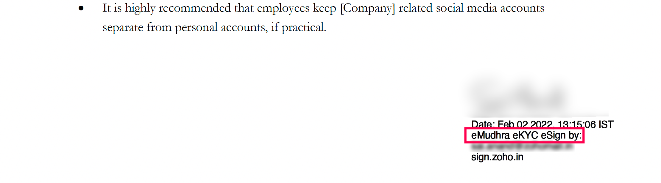 1. eMudhraの署名を確認する別の方法として、表示された署名を確認することができます。ただし、これは、ドキュメントに署名フィールドがある場合にのみ確認できます。