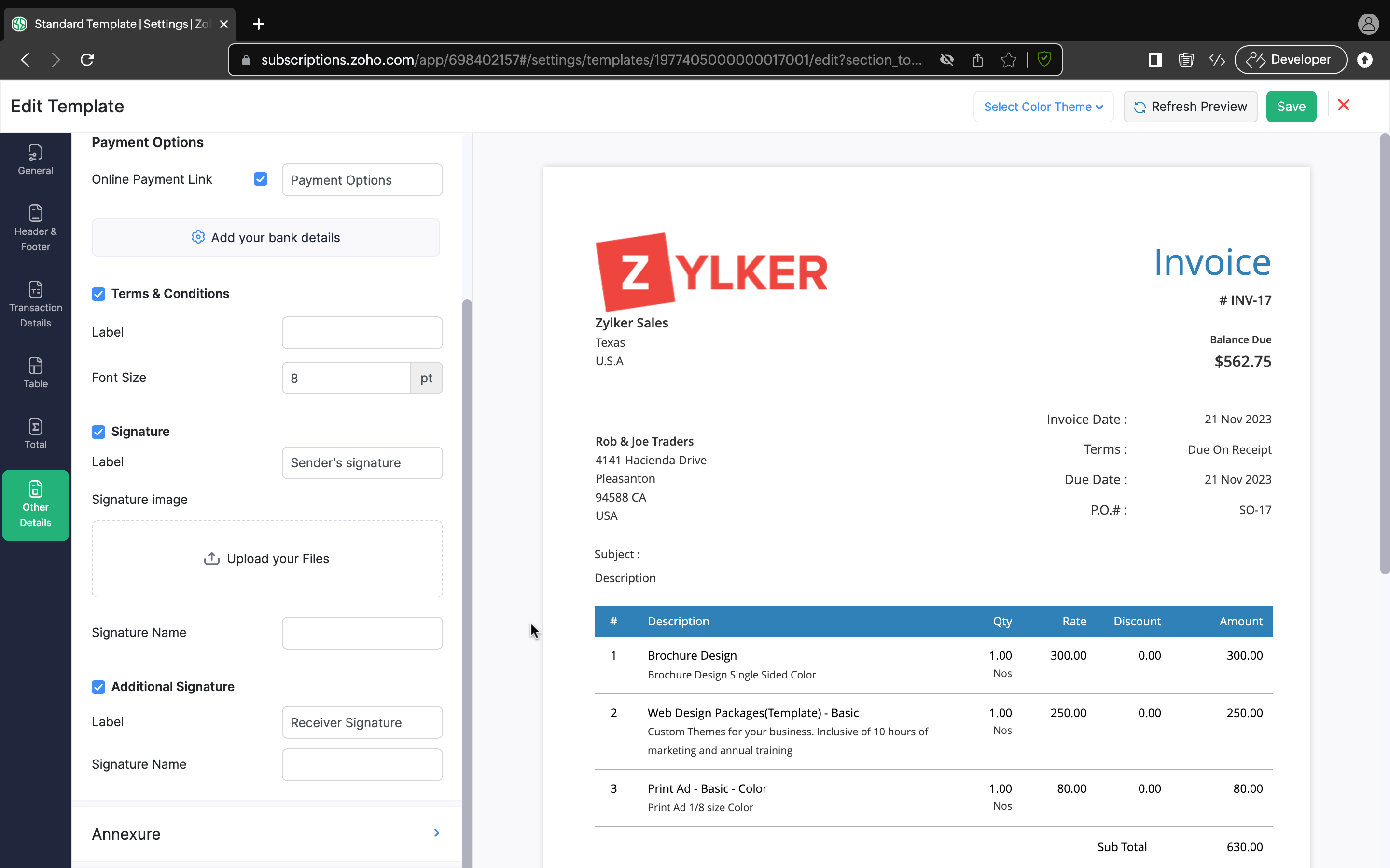 Zoho Billing を使用して請求書に電子署名する手順