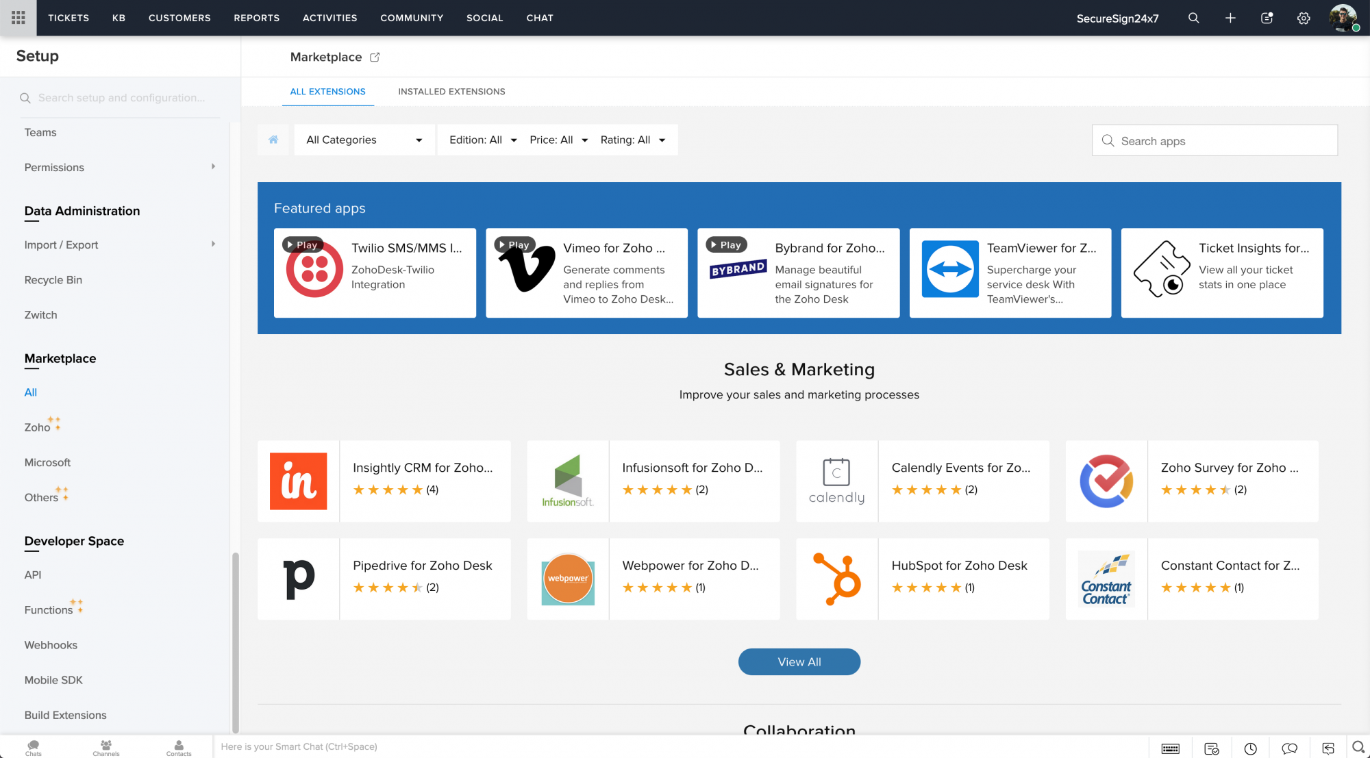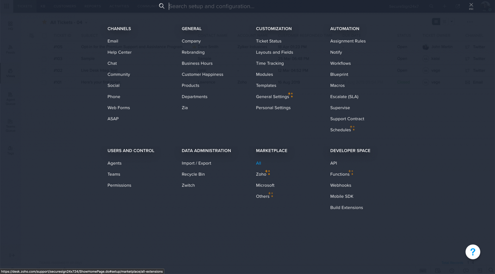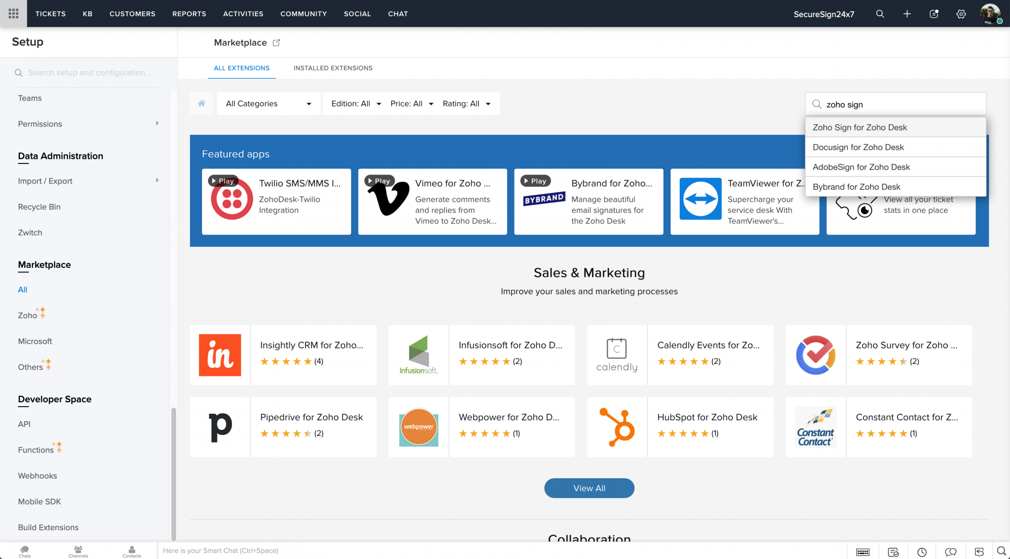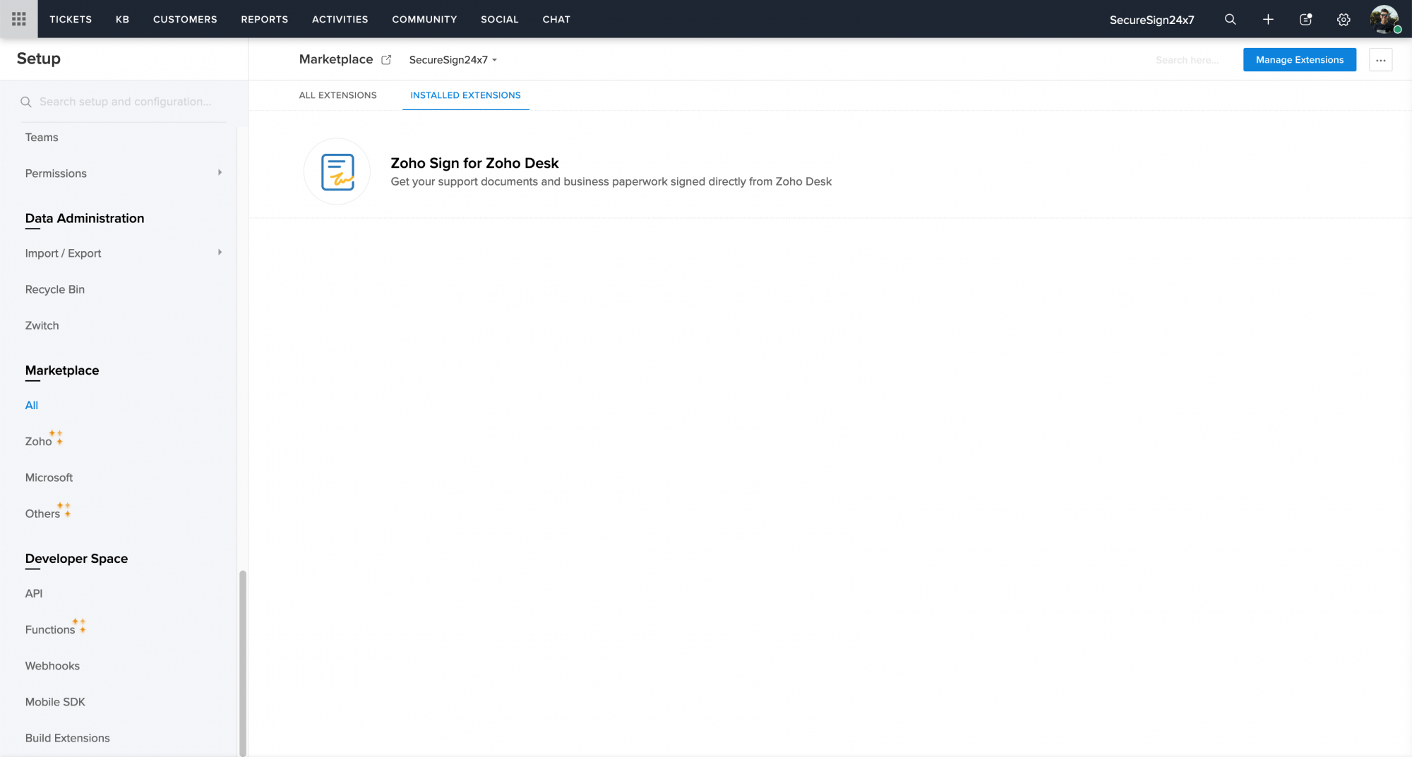 注意: Zoho Signの拡張機能は、Zoho Deskの有料プランでのみアクセスできます。