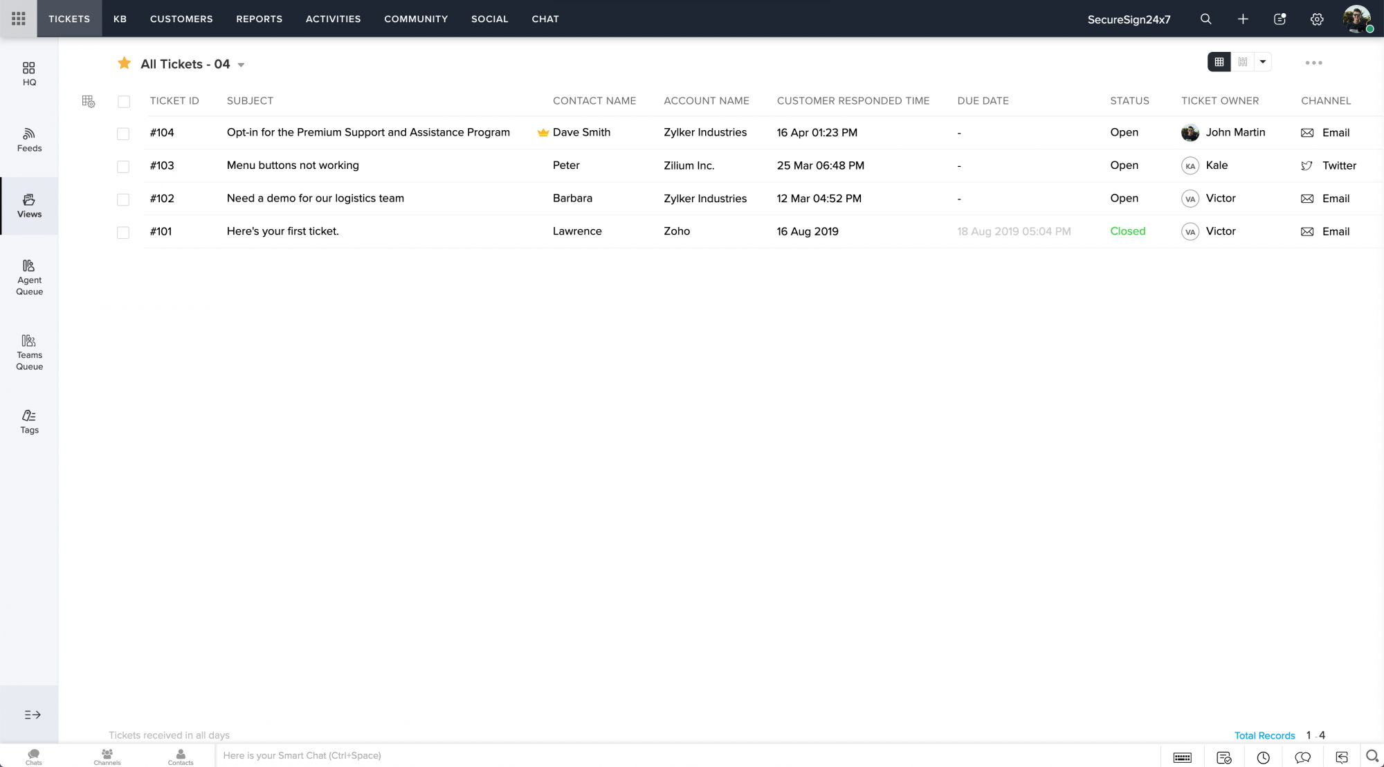 Zoho Signは、Zoho Desk内で使用するための拡張機能を提供しています。 この拡張機能を使用すると、自分自身で文書にサインするか、e-signワークフローを設定して文書に署名を収集し、Zoho Deskから直接法的効力を持つビジネス文書を作成できます。