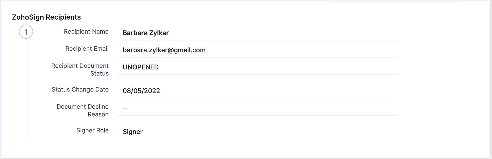 2. Zoho Sign Recipients:ドキュメントの送信先受信者の一覧が表示されます。