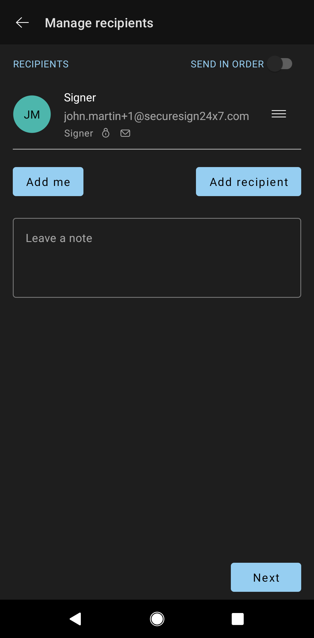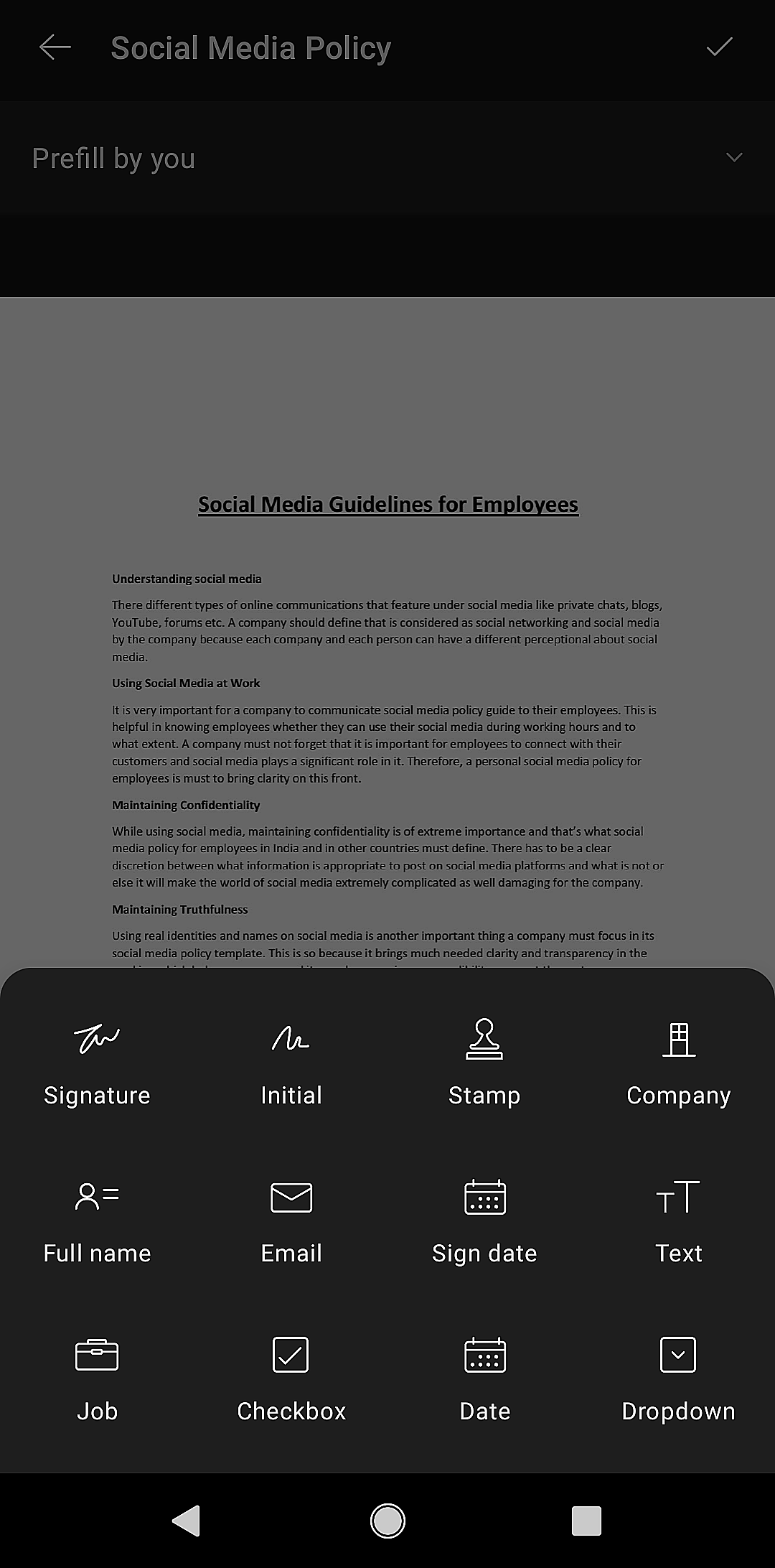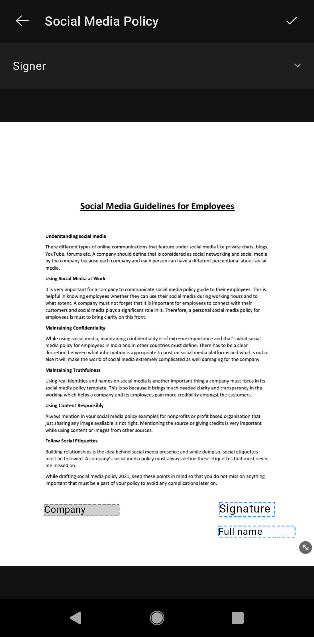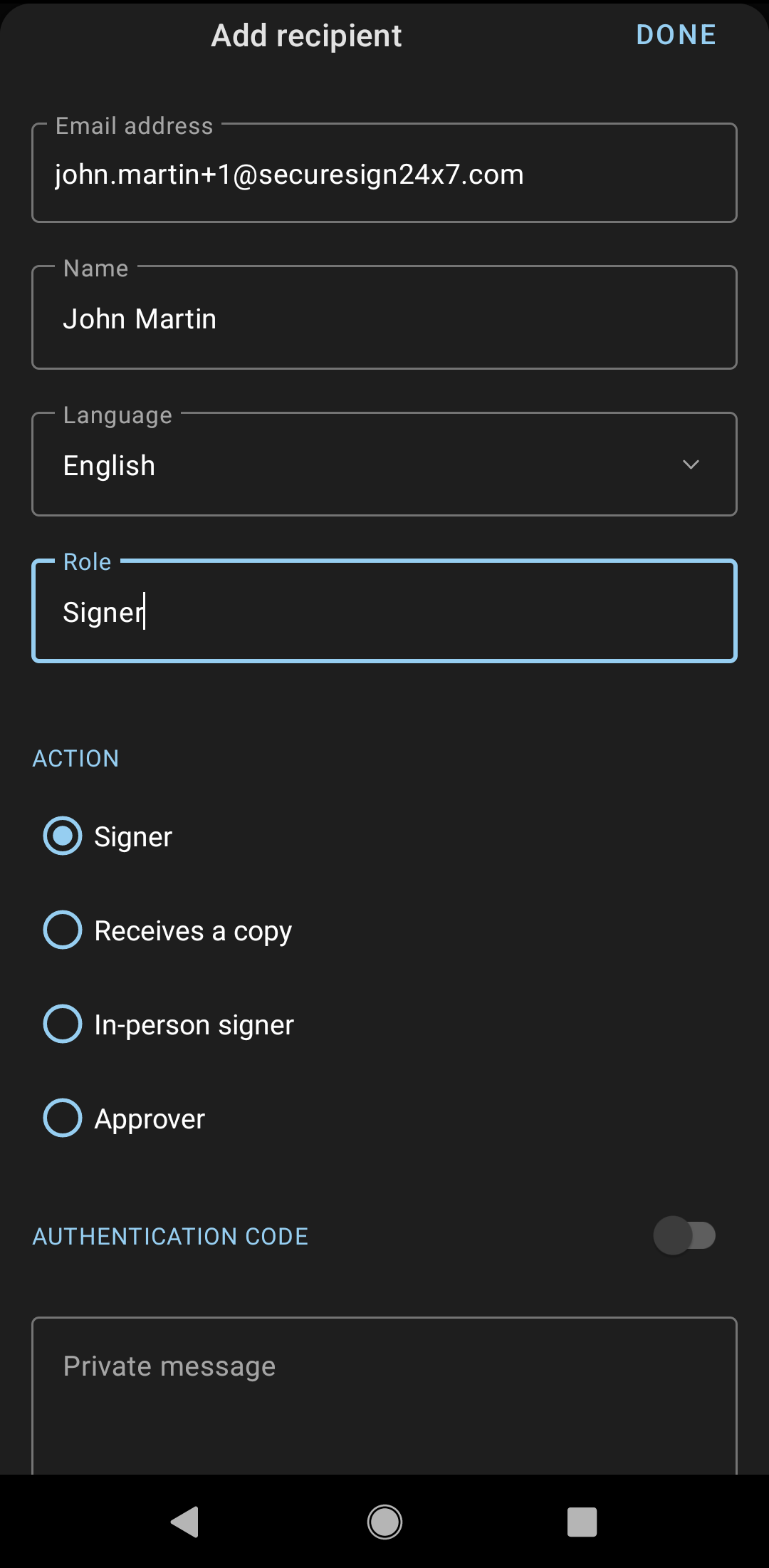 Zoho Signを使用すると、AndroidアプリからSignFormsのアクセスと管理が可能です。SignFormを有効にしたり無効にしたり、名前を変更したり、有効期限を設定したり、認証を強制したり、認証の配信種類を設定したり、SignFormの応答を制限したりできます。また、アプリからSignFormsのURLとQRコードにもアクセスすることができます。