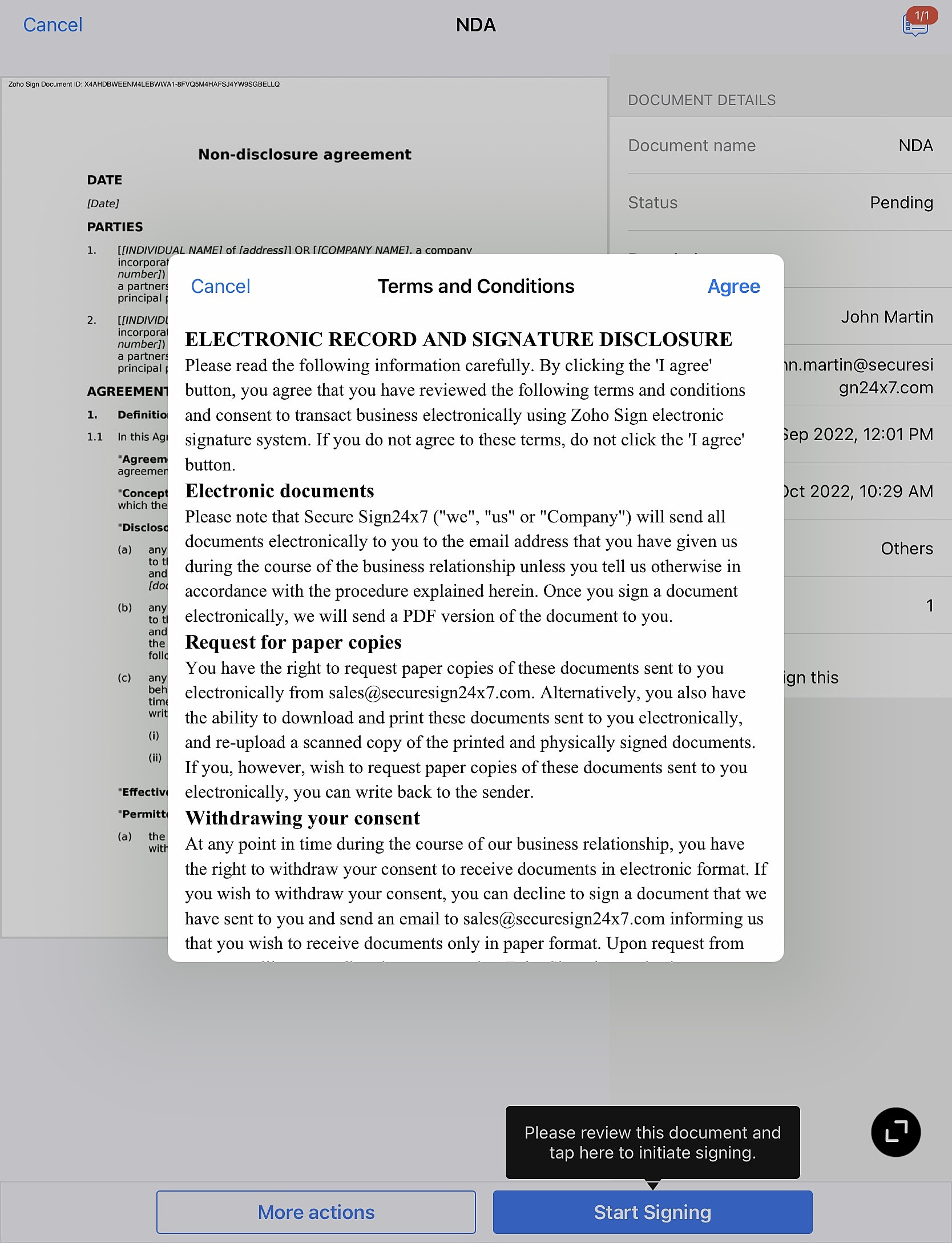 3. 画面下部の開始する Signingボタンをタップし、利用規約を読んだ後Agreeをタップします。