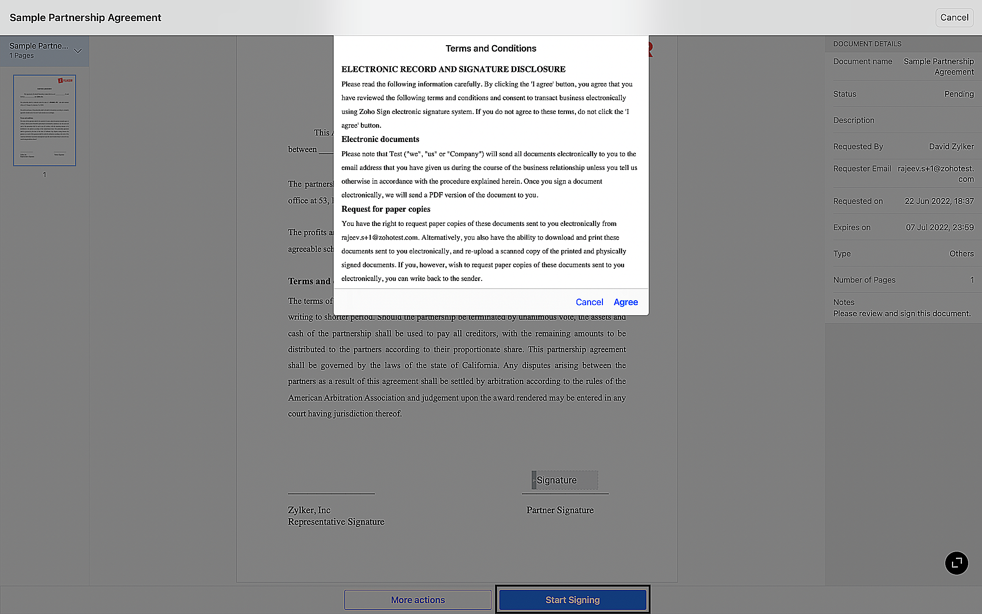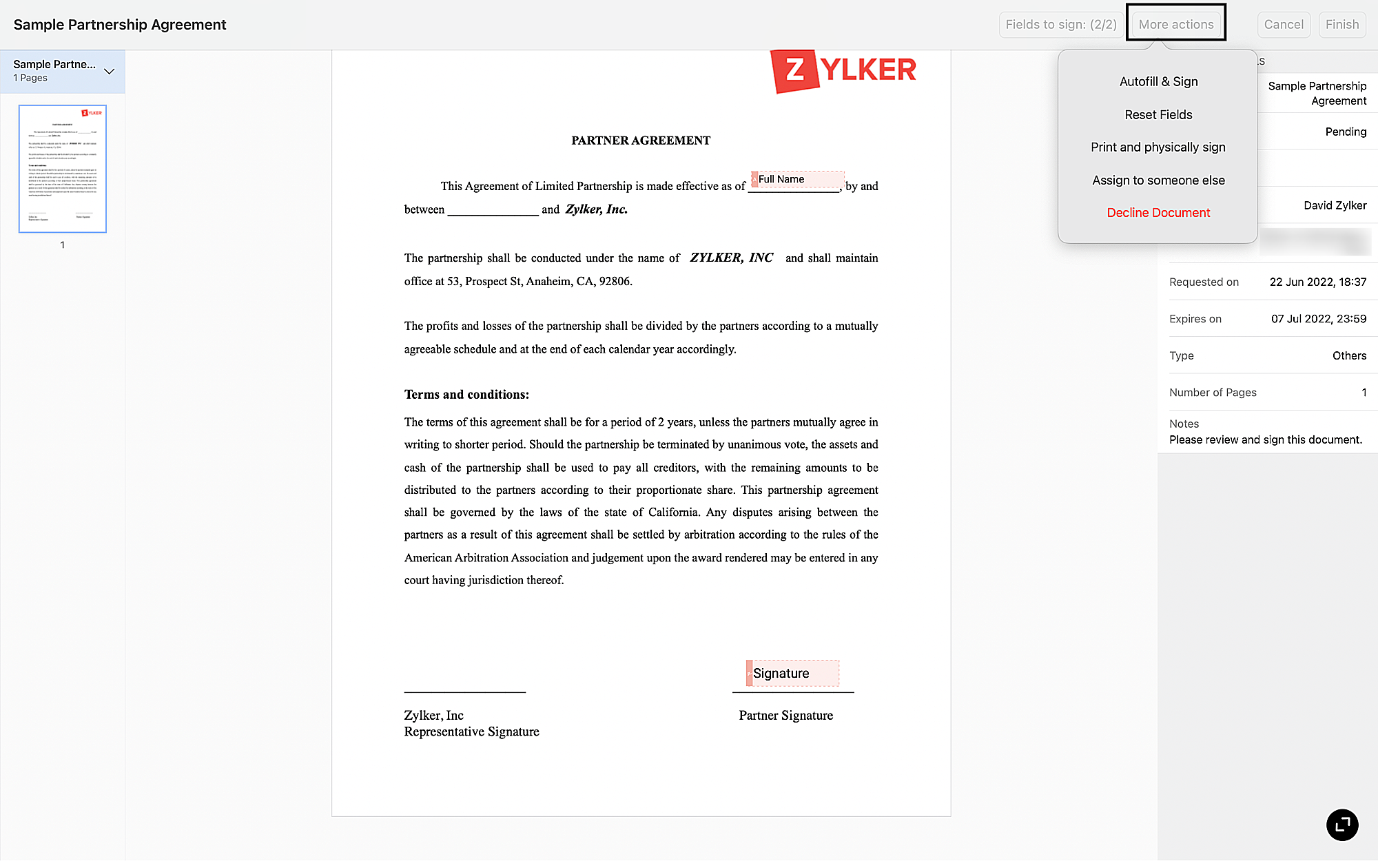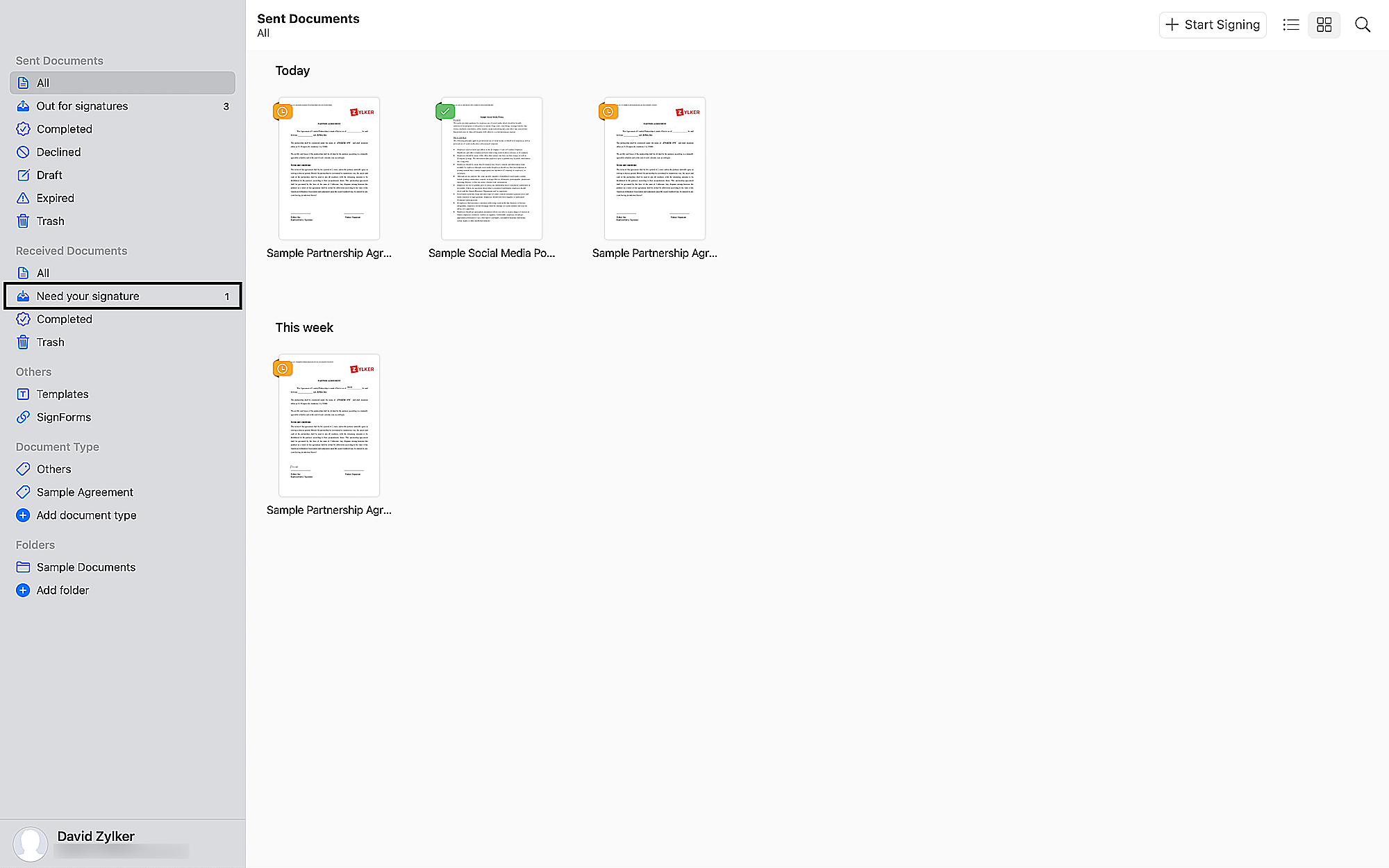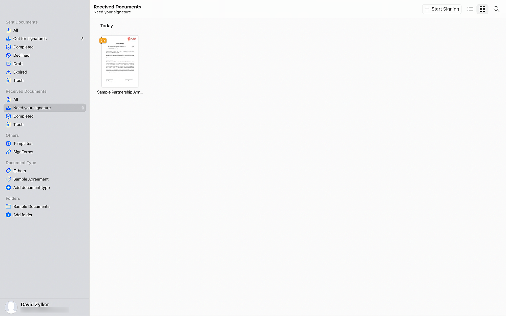 既存のZoho Signユーザーの場合、Zoho Signアプリから受け取ったドキュメントに署名することができます。