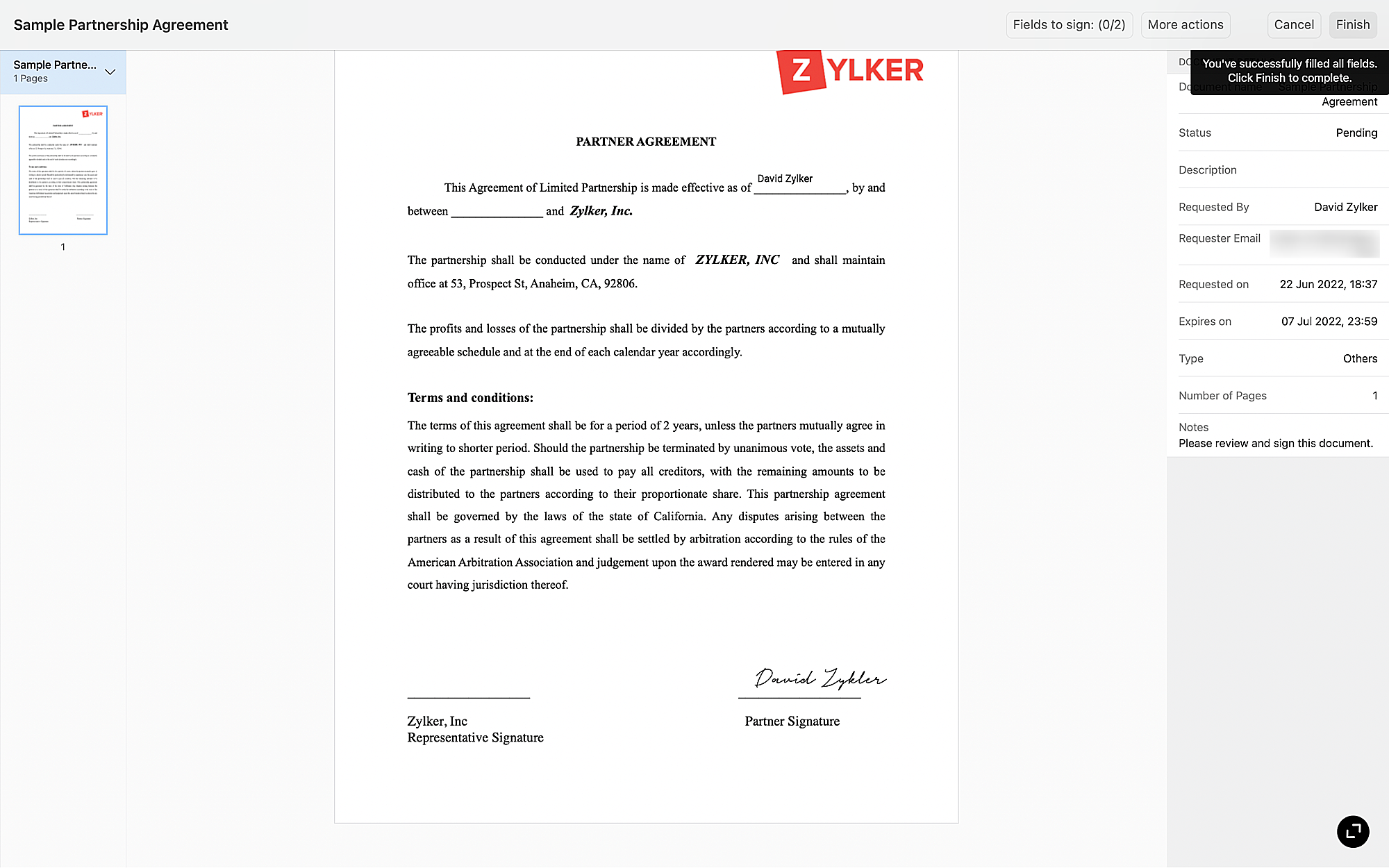 6. そうでなければ、ドキュメントビューアーページの入力フィールドをすべて入力してドキュメントに署名します。