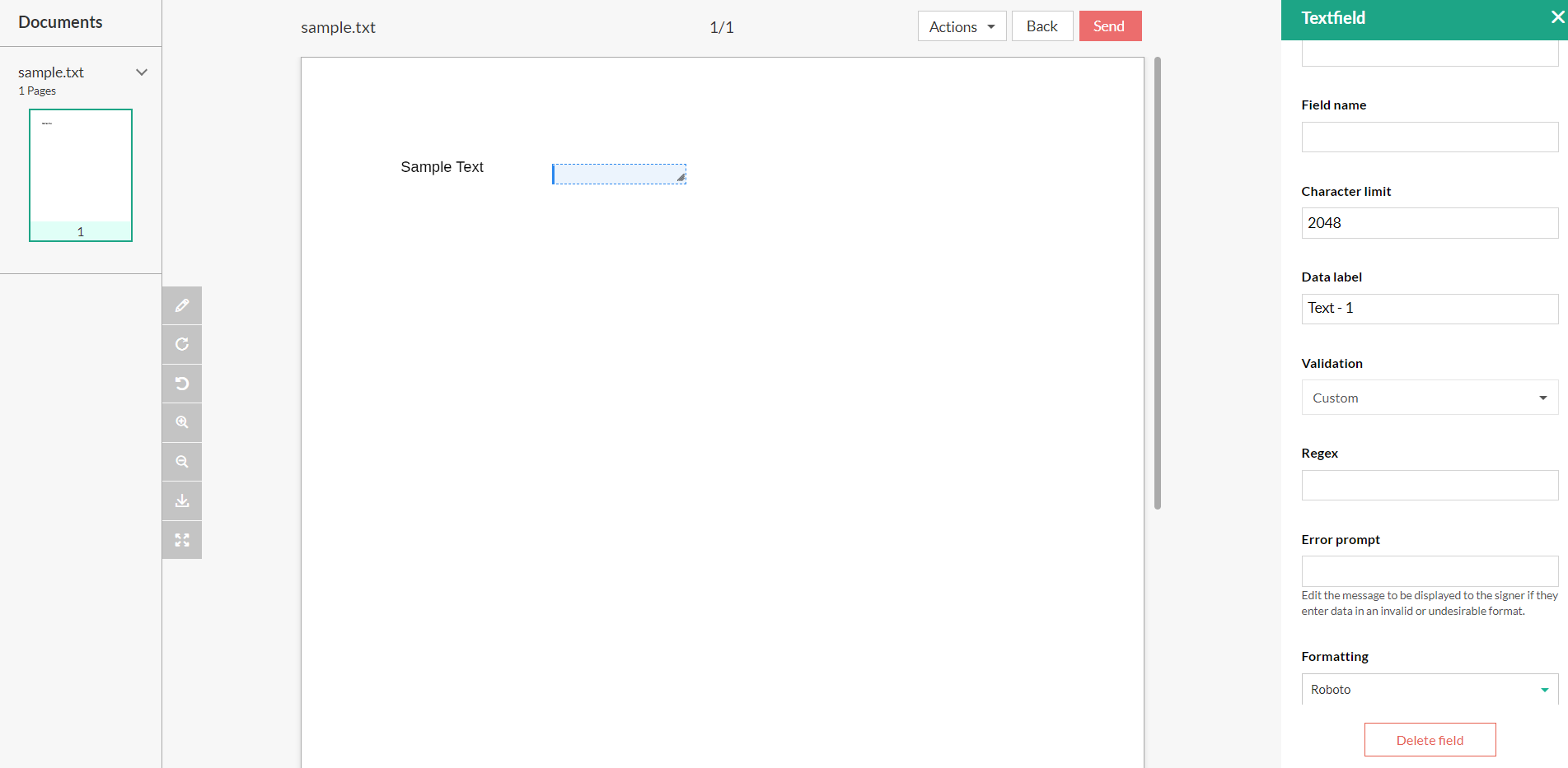 署名者には、指定されたテキストのみの入力を許可できます。署名者に複数の選択肢(いずれか一つ)を与えたい場合は、語句をで「 | 」で区切ります。