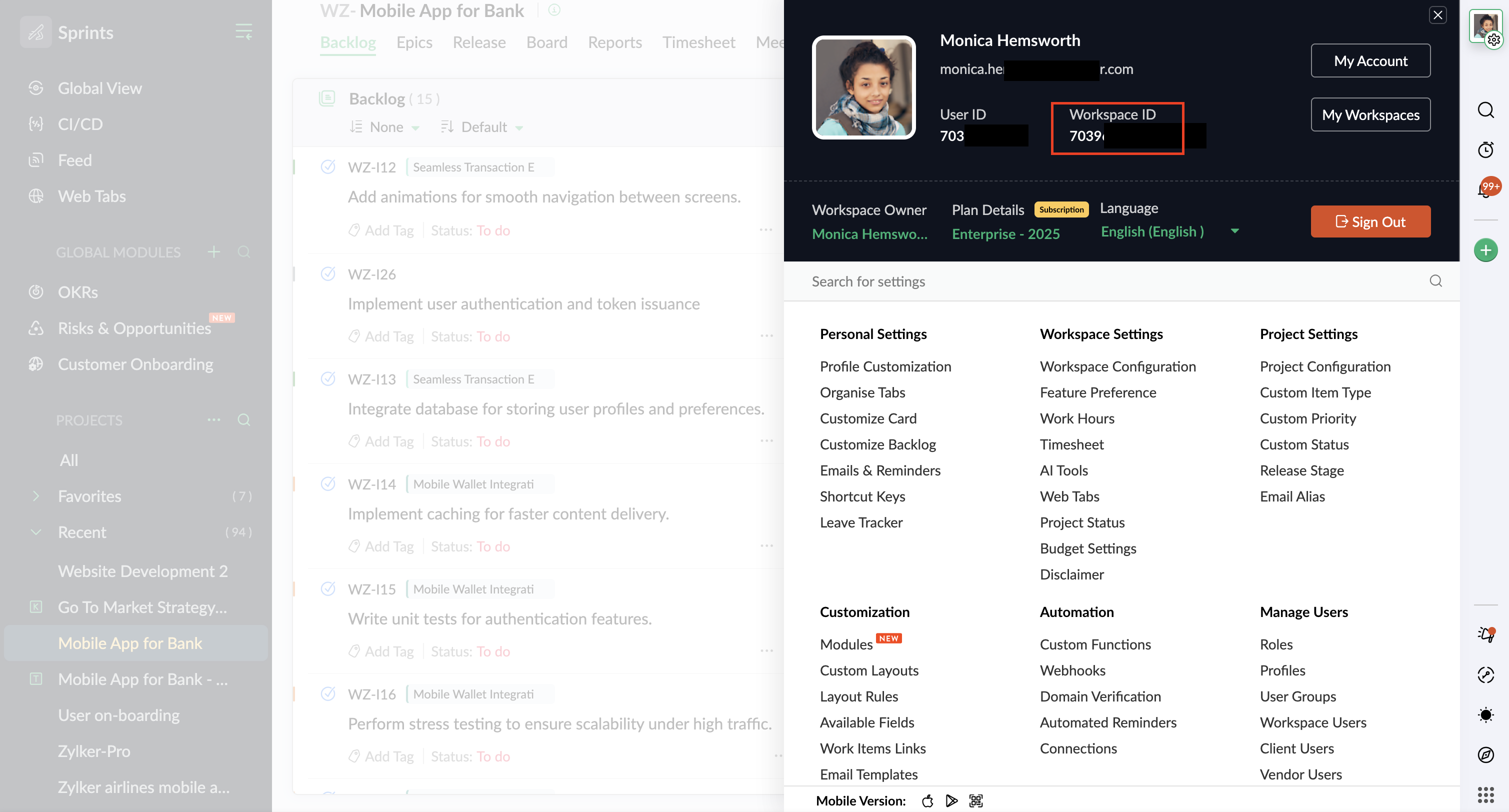 - Zoho Sprints ワークスペースにアクセスします。