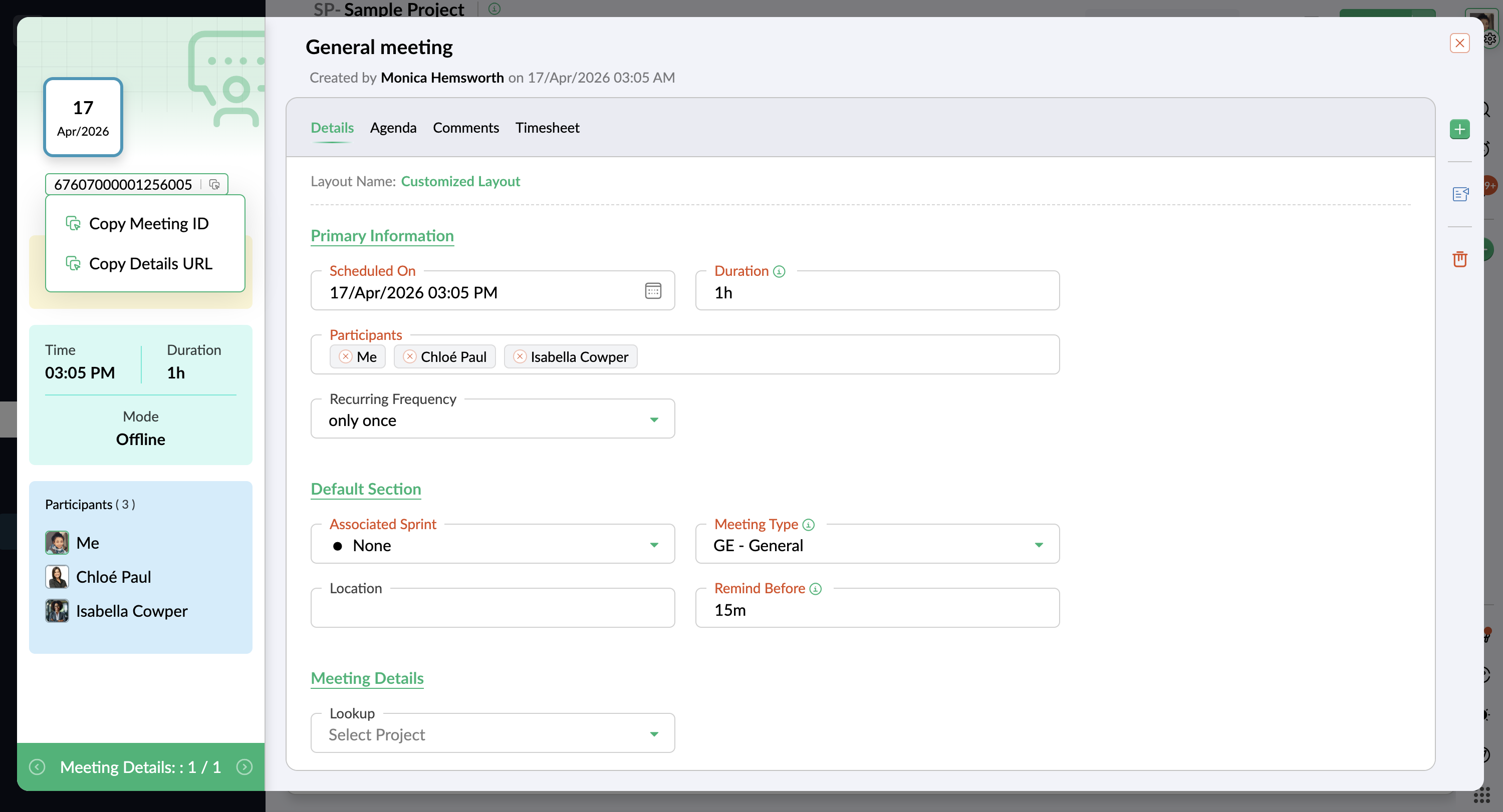 - ミーティング詳細ページで、ミーティングの接頭辞にカーソルを合わせます。