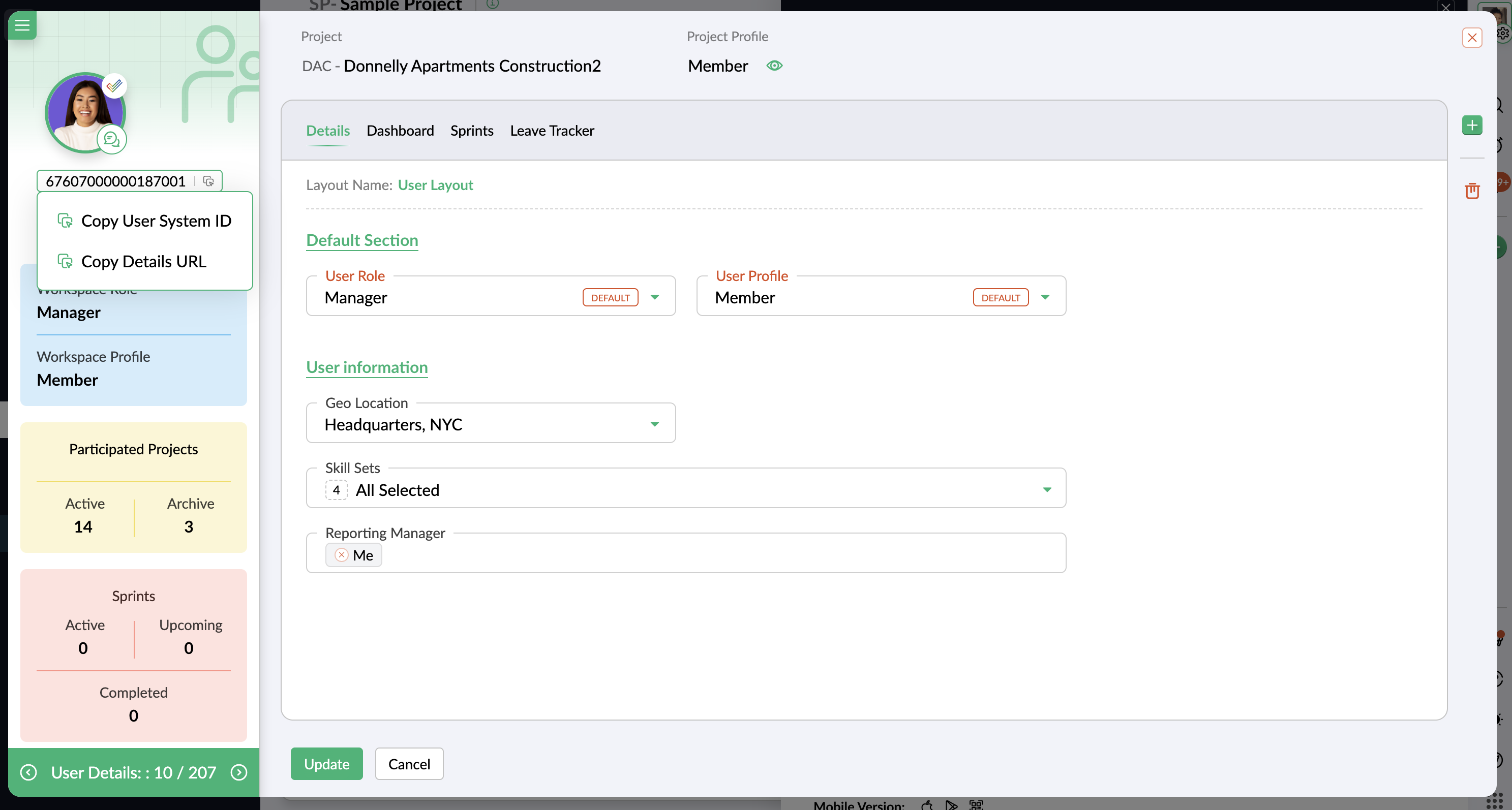 - [Copy User System ID] または [Copy Details URL] を選択します。