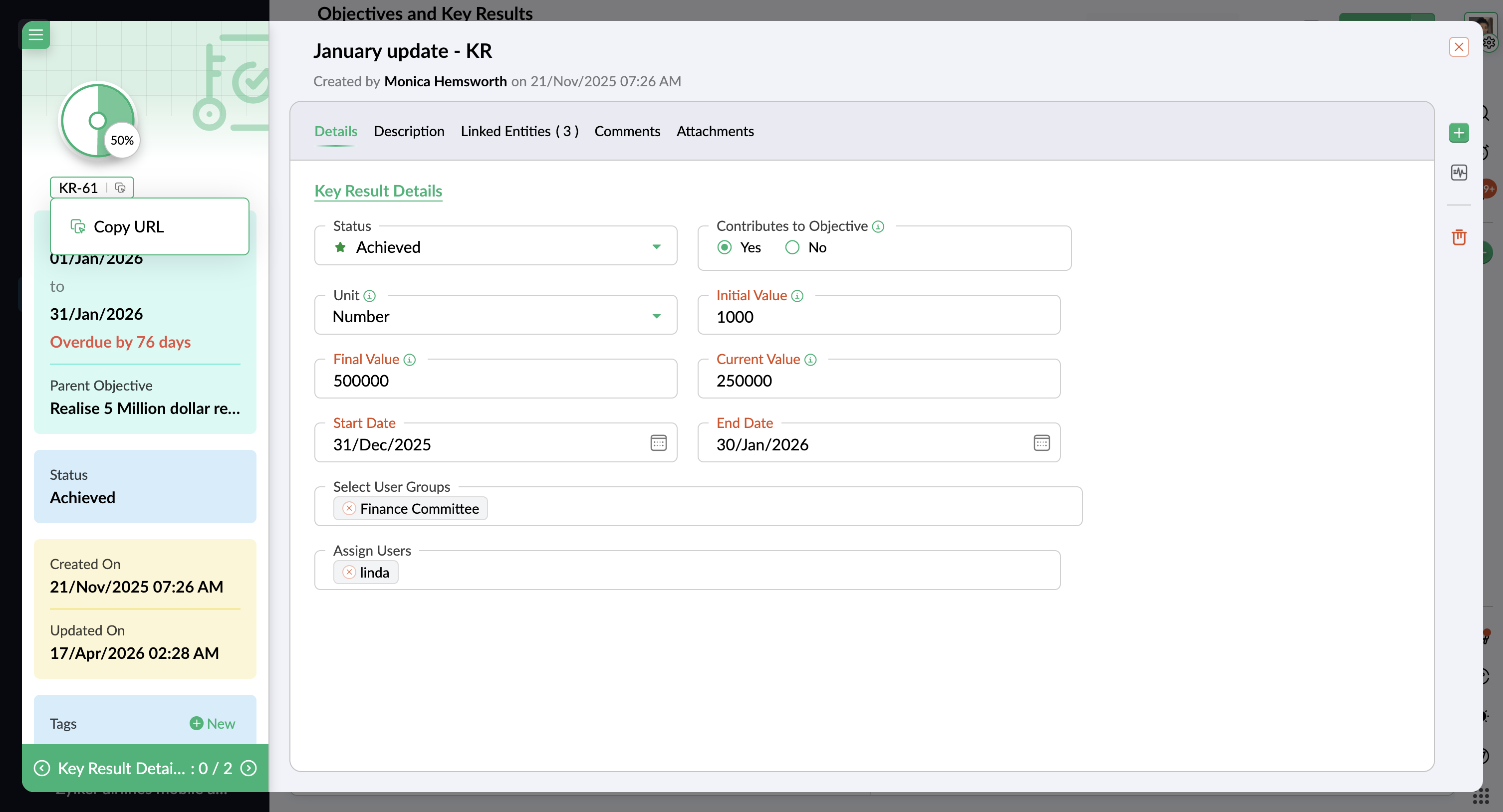 - キーリザルト詳細ページで、キーリザルトの接頭辞にカーソルを合わせます。