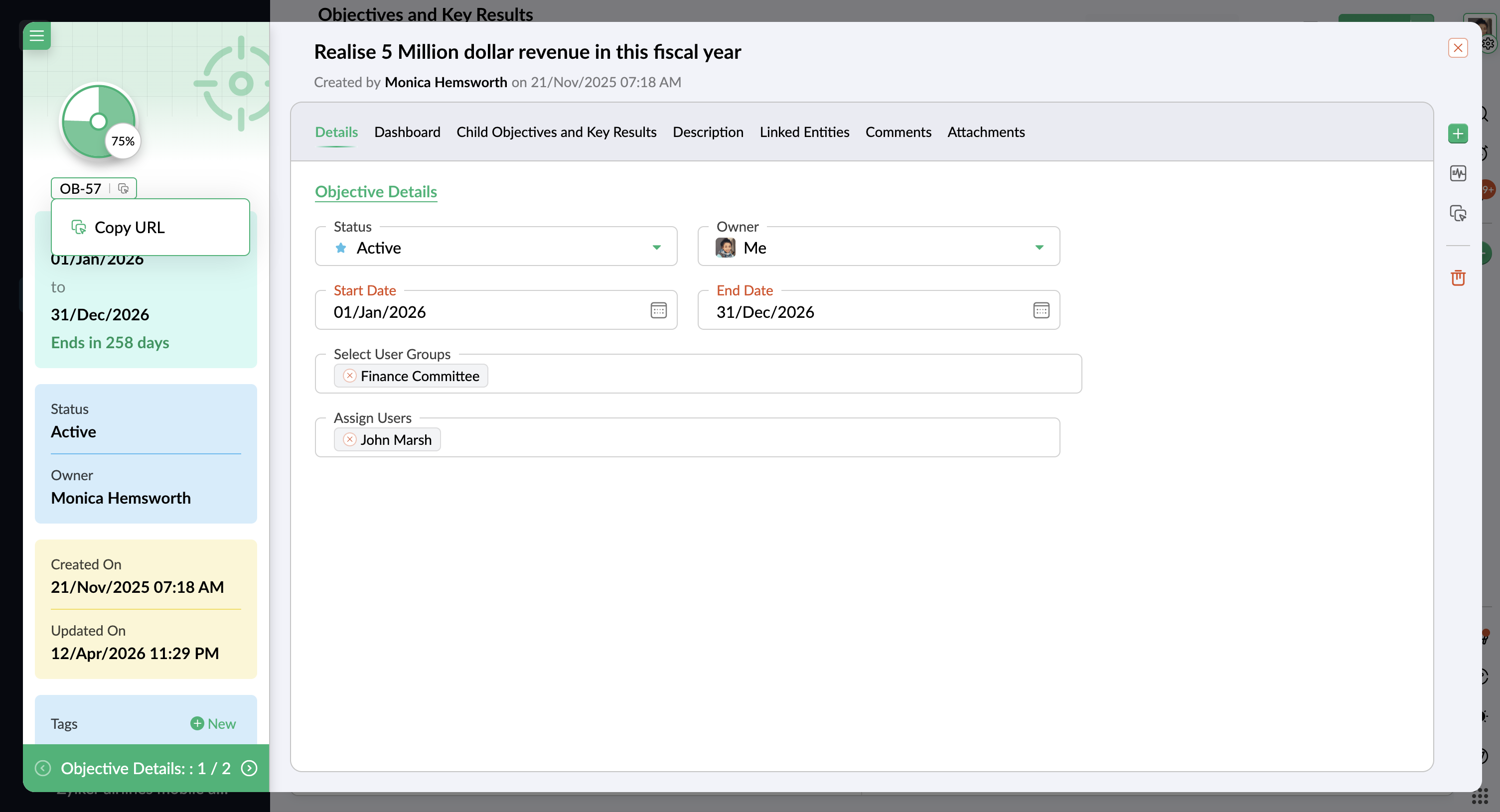 - [Global タブ] の下で [OKRs] を選択します。