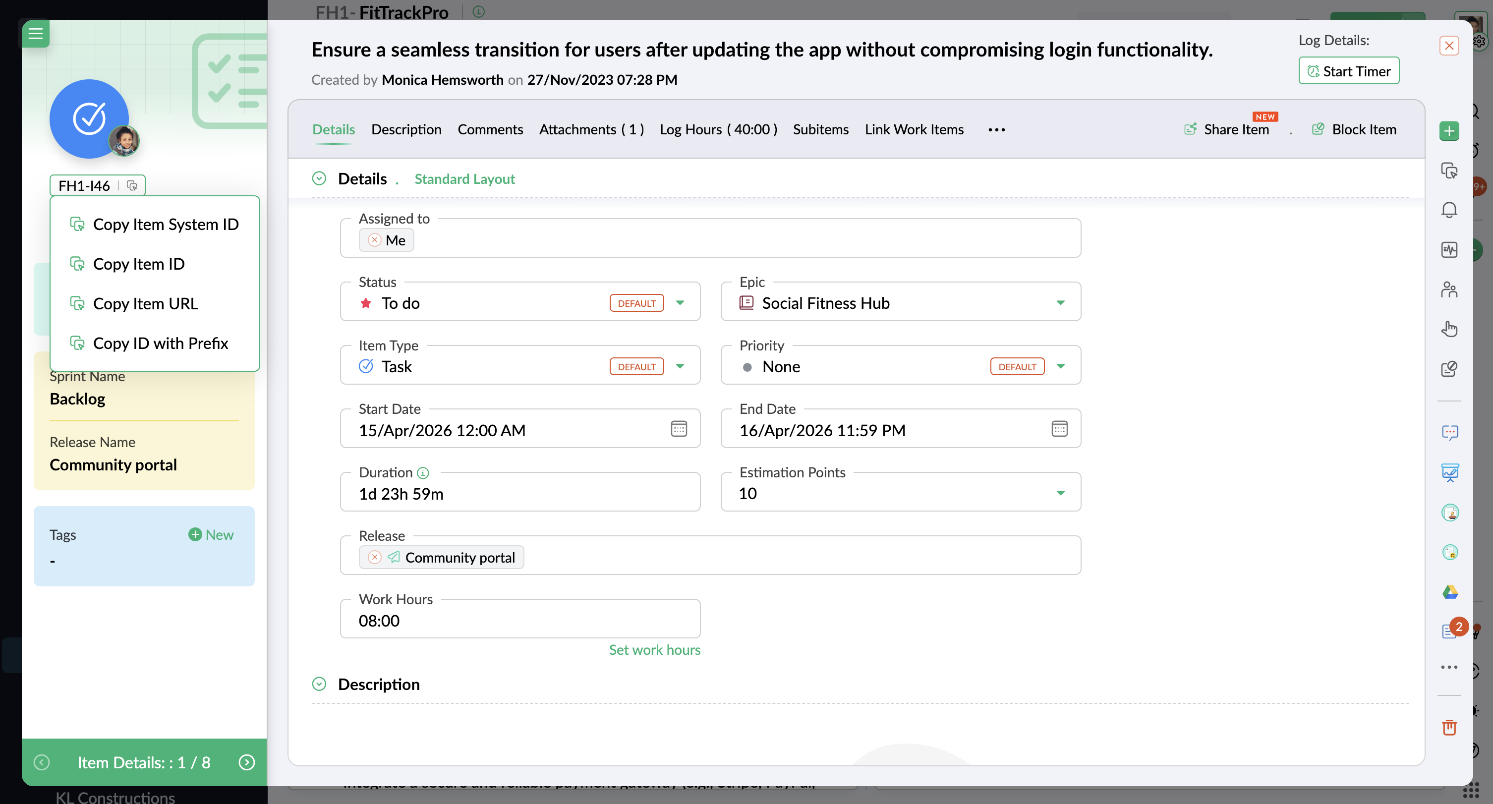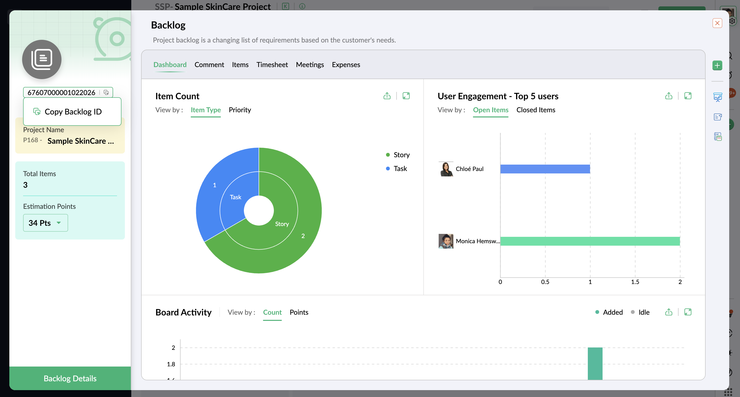 - [Copy Backlog ID] を選択します。