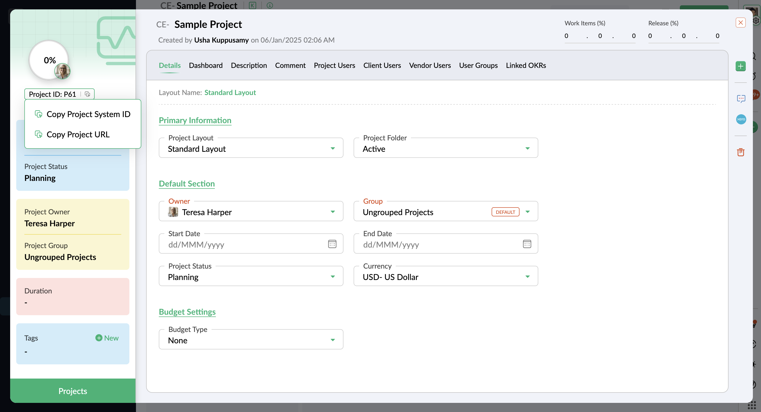 - [Copy Project System ID] または [Copy Project URL] を選択します。