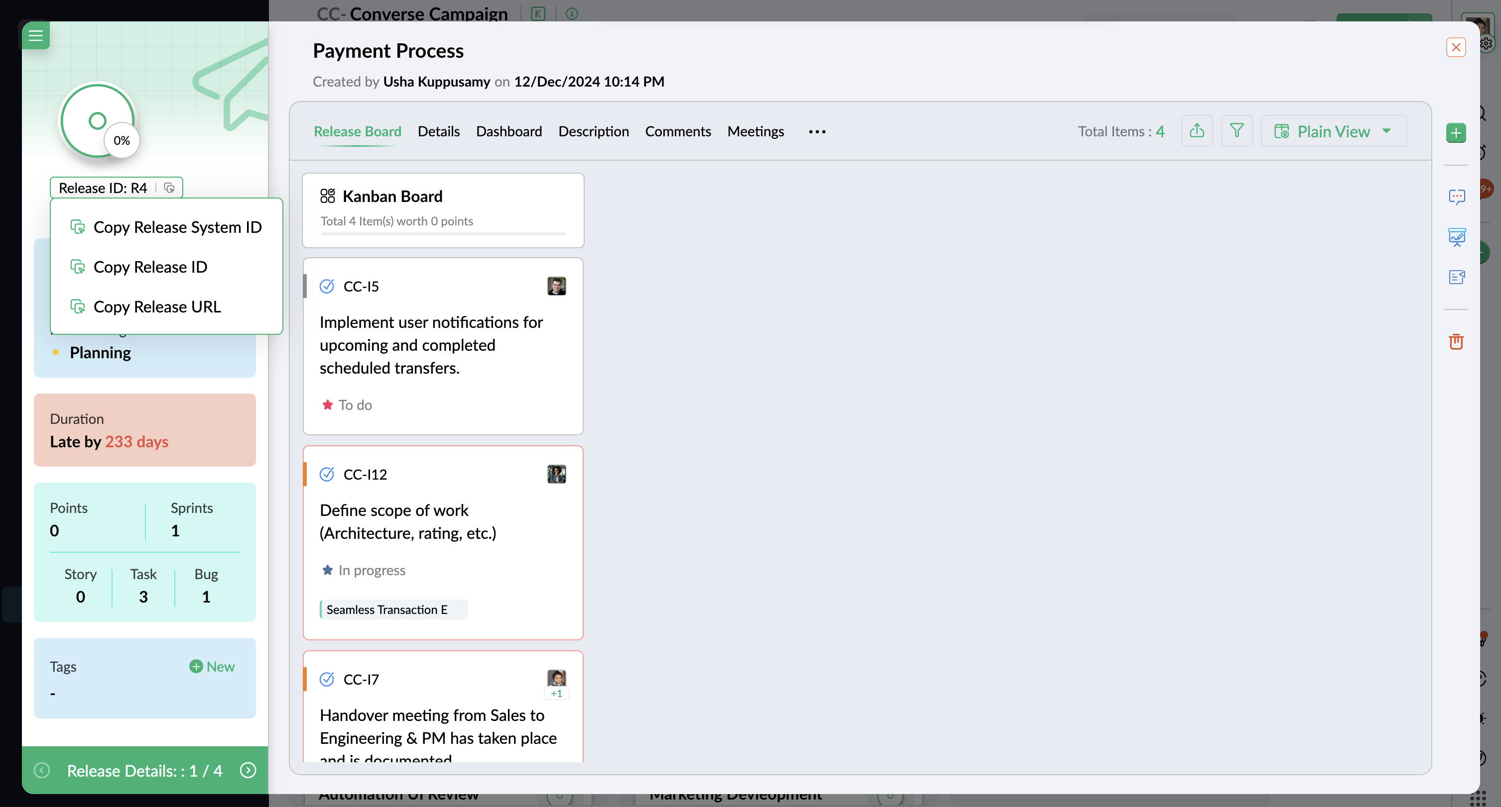 - リリース詳細ページで、リリース ID にカーソルを合わせます。