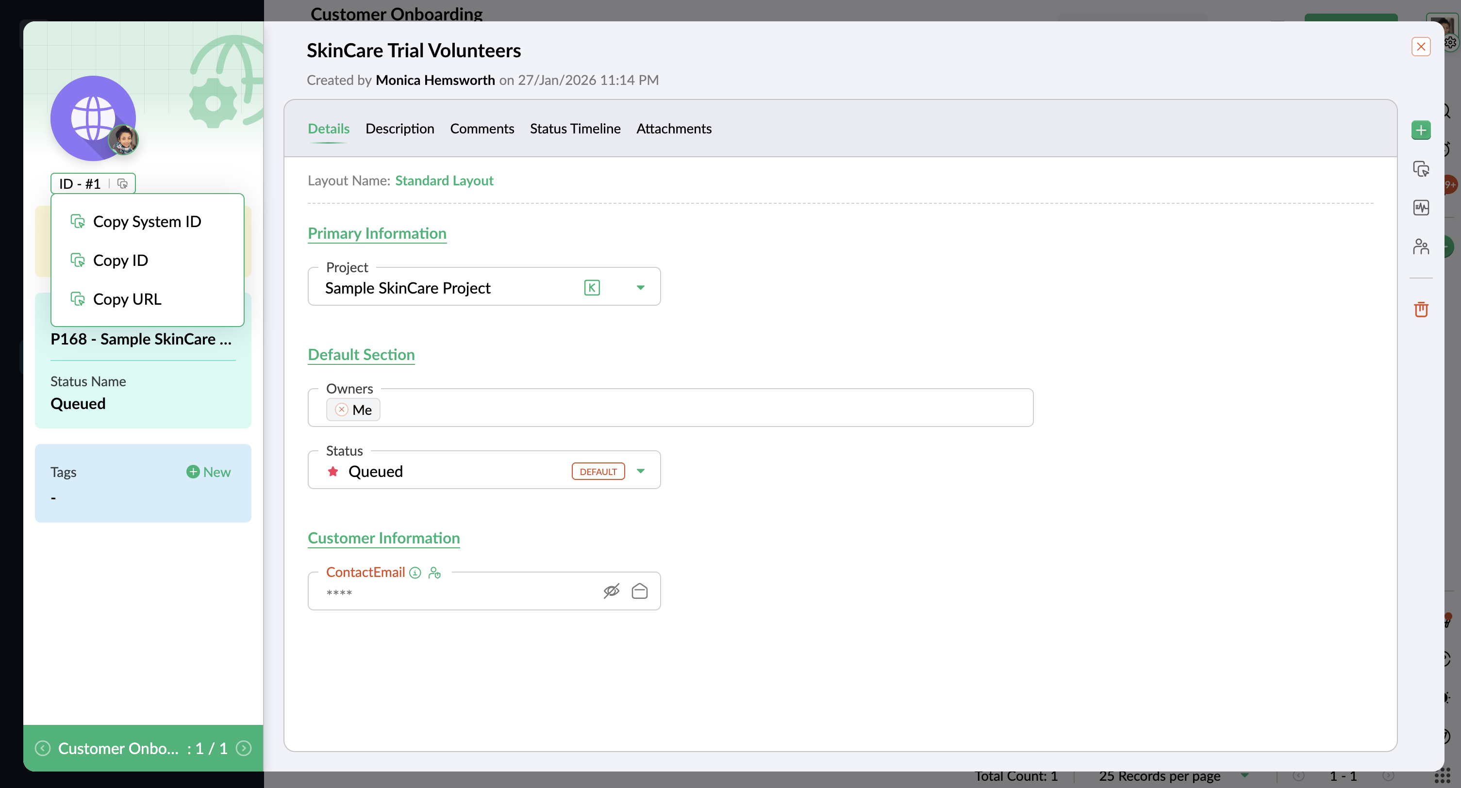 - [Copy System ID]、[Copy ID]、[Copy URL] のいずれかを選択します。