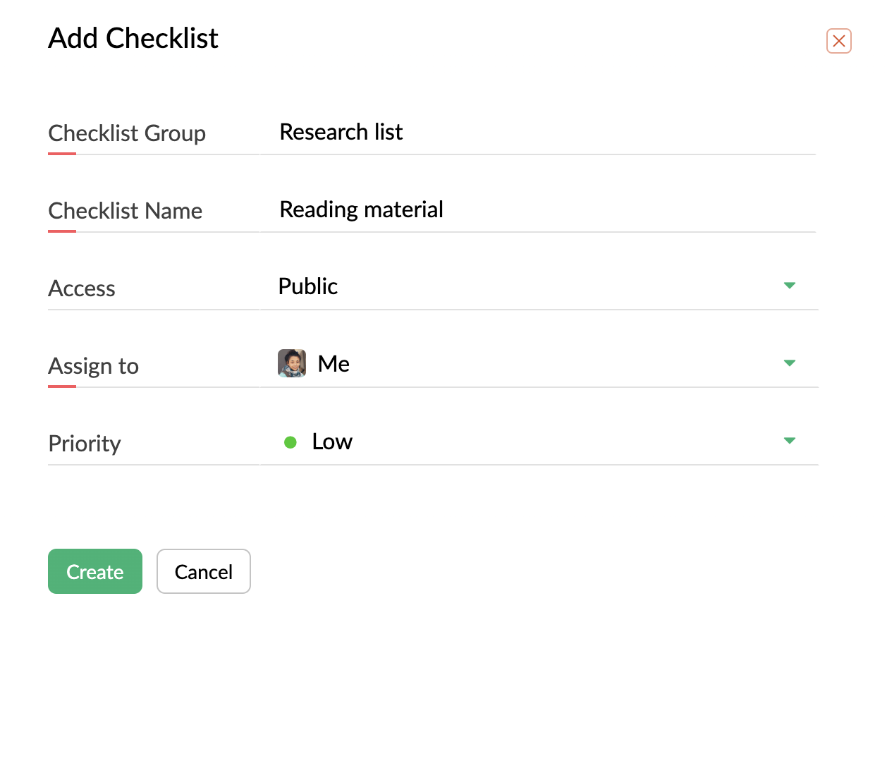 9. 作成ボタンをクリックします。チェックリストが作成されます。