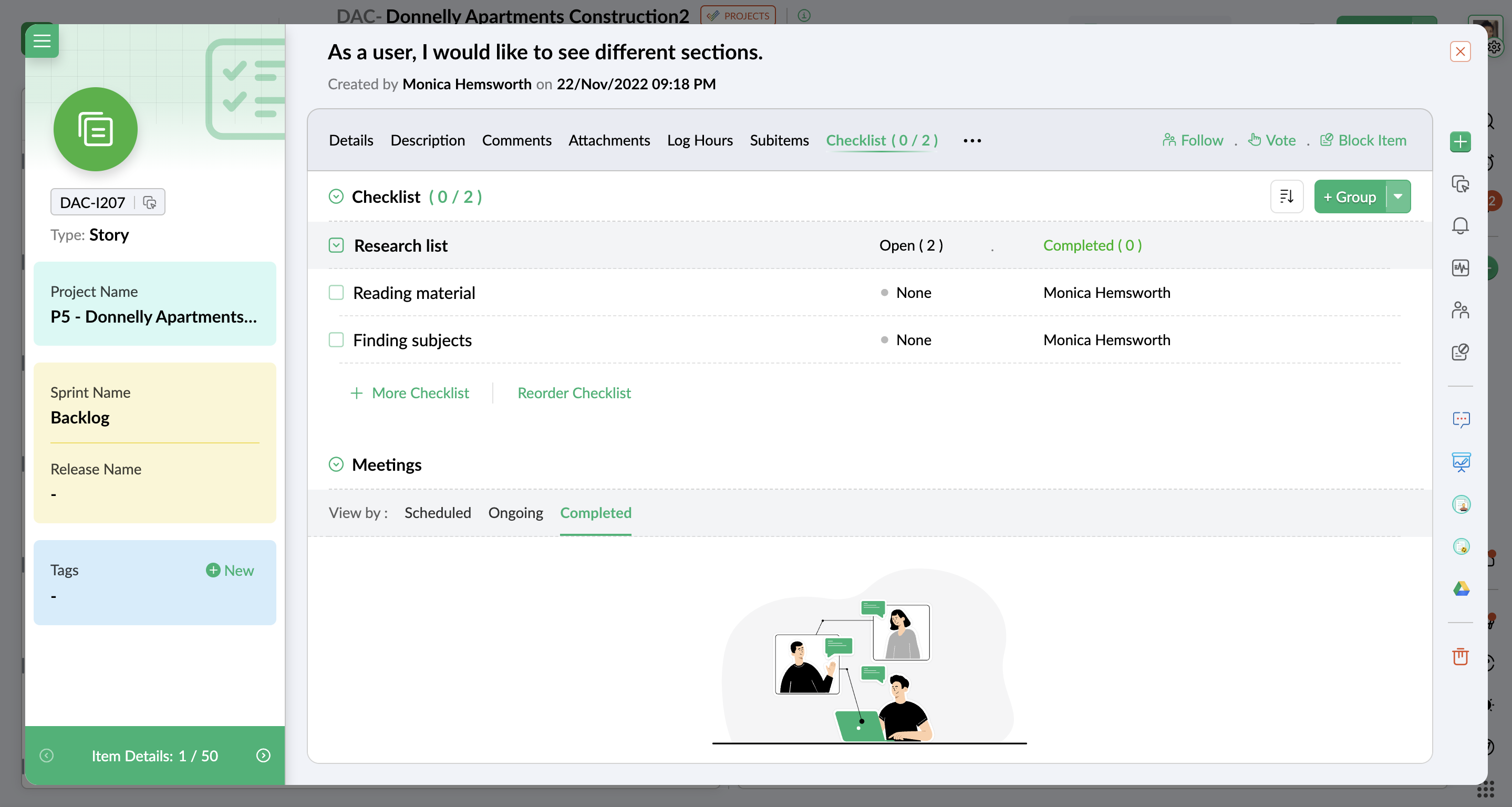 サブアイテムは、作業商品として扱われる副次的な要素です。それぞれ独立した時間と労力が必要となります。一方、チェックリストは、目の前の作業商品のためのTo-Doリストに過ぎません。個別の作業商品としては扱われず、親商品を完了ステータスへ移動するために必ずしも個々に完了する必要はありません。