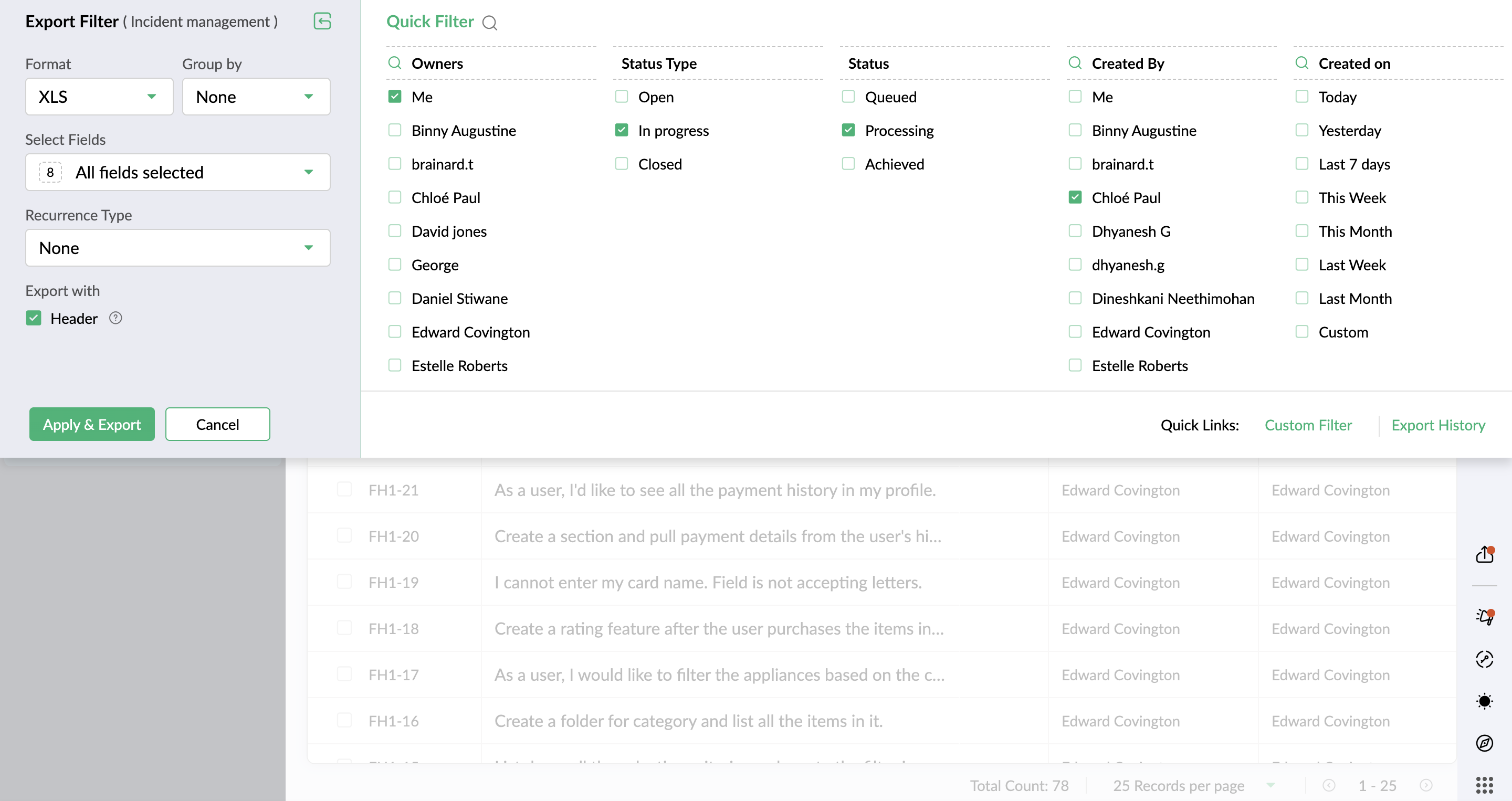 - 適用してエクスポート ボタンをクリックします。エクスポートが開始されます。