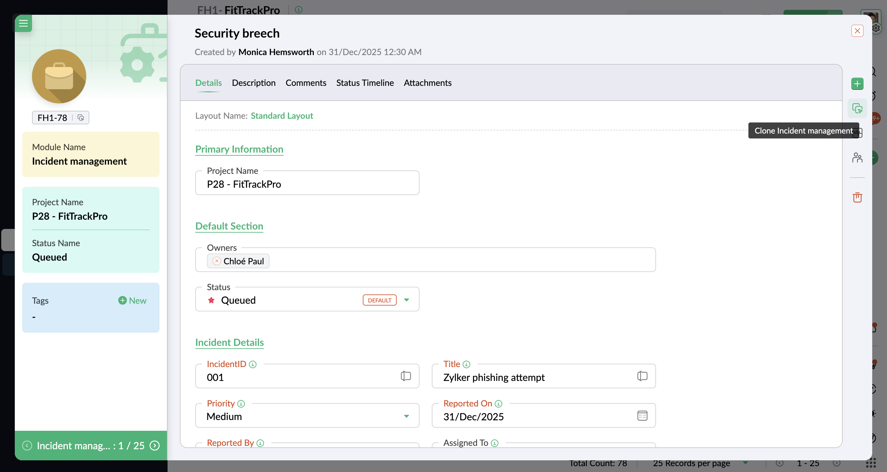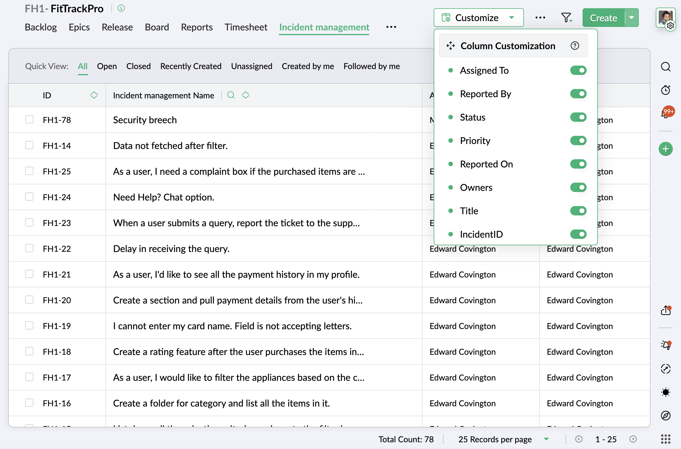 カスタムタブに表示される列は、列のカスタマイズ オプションを使用して変更できます。また、列をドラッグ&ドロップして、必要な順序に並べ替えることもできます。