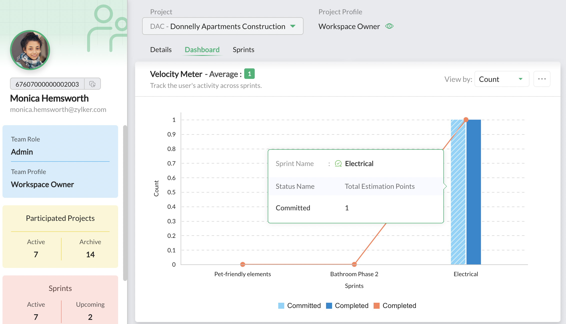 1. 平均獲得ポイントと完了したスプリントの合計数をもとに、ユーザーの活動を評価します。