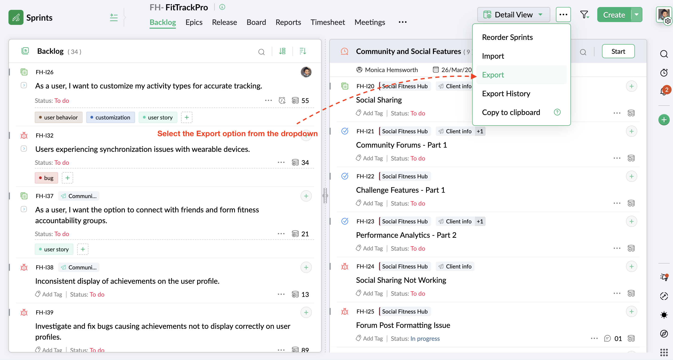 2. ファイルをダウンロードして、別のスプリントまたはプロジェクトへインポートできます。