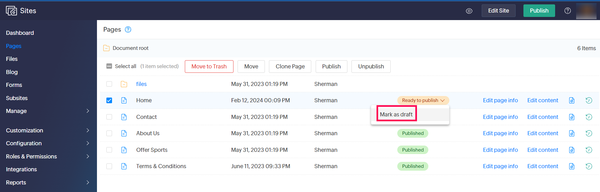 公開 設定をカスタマイズすることで、どのページやファイルを公開済みにするかを管理できます。これにより、未完成や下書きページを誤って公開するリスクなく、Webサイトへ段階的な変更を反映できます。