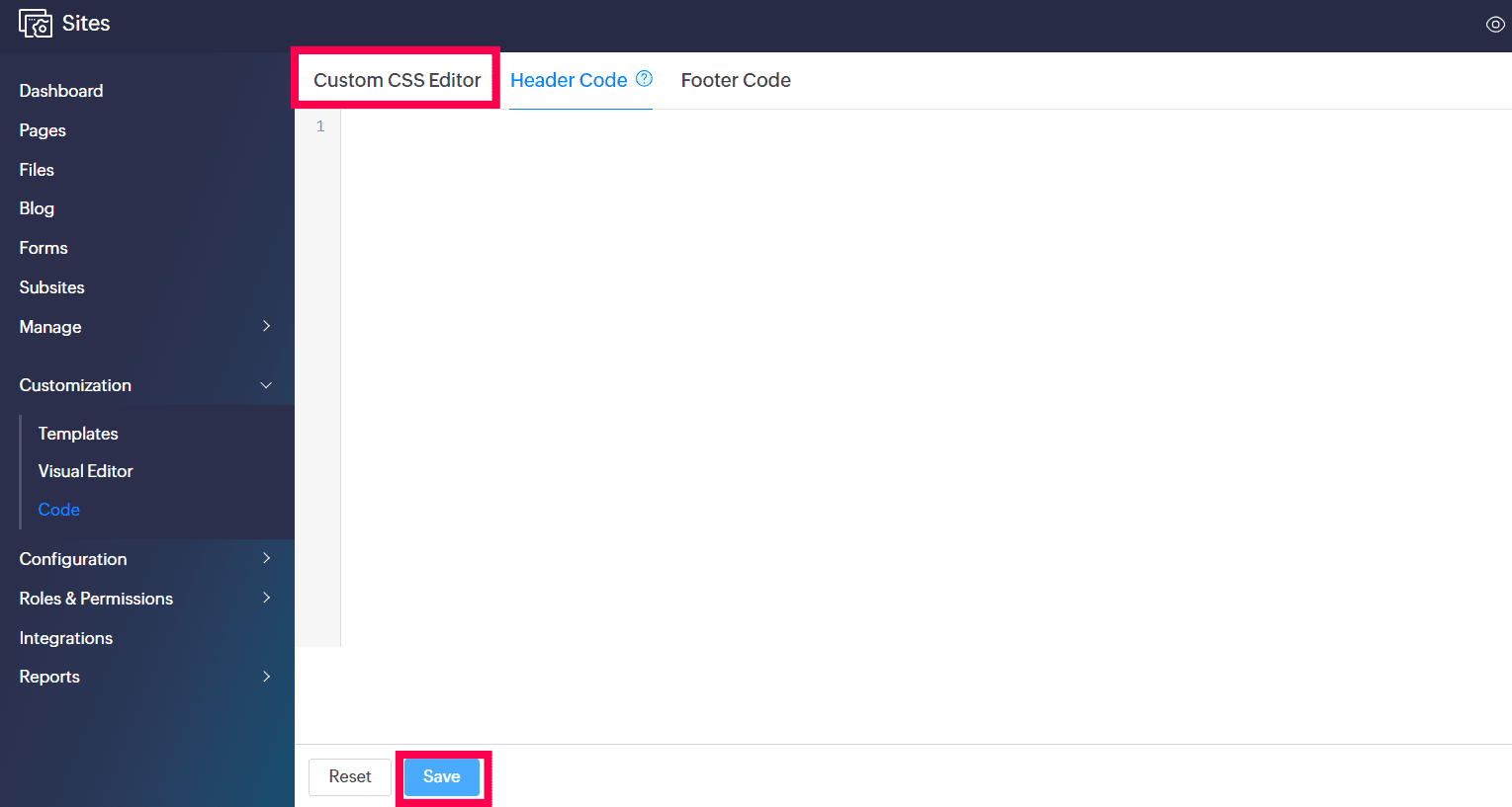Zoho SitesのカスタムCSSエディターを使えば、Webサイトのデザインをお好みに合わせて簡単にカスタマイズできます。独自のCSSスクリプトを追加し、Webサイトの見た目や雰囲気を自由自在にコントロールできます。
