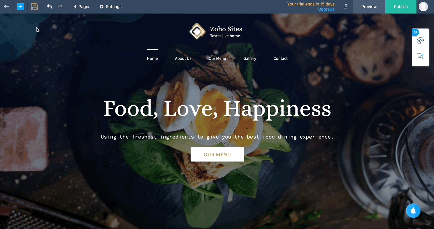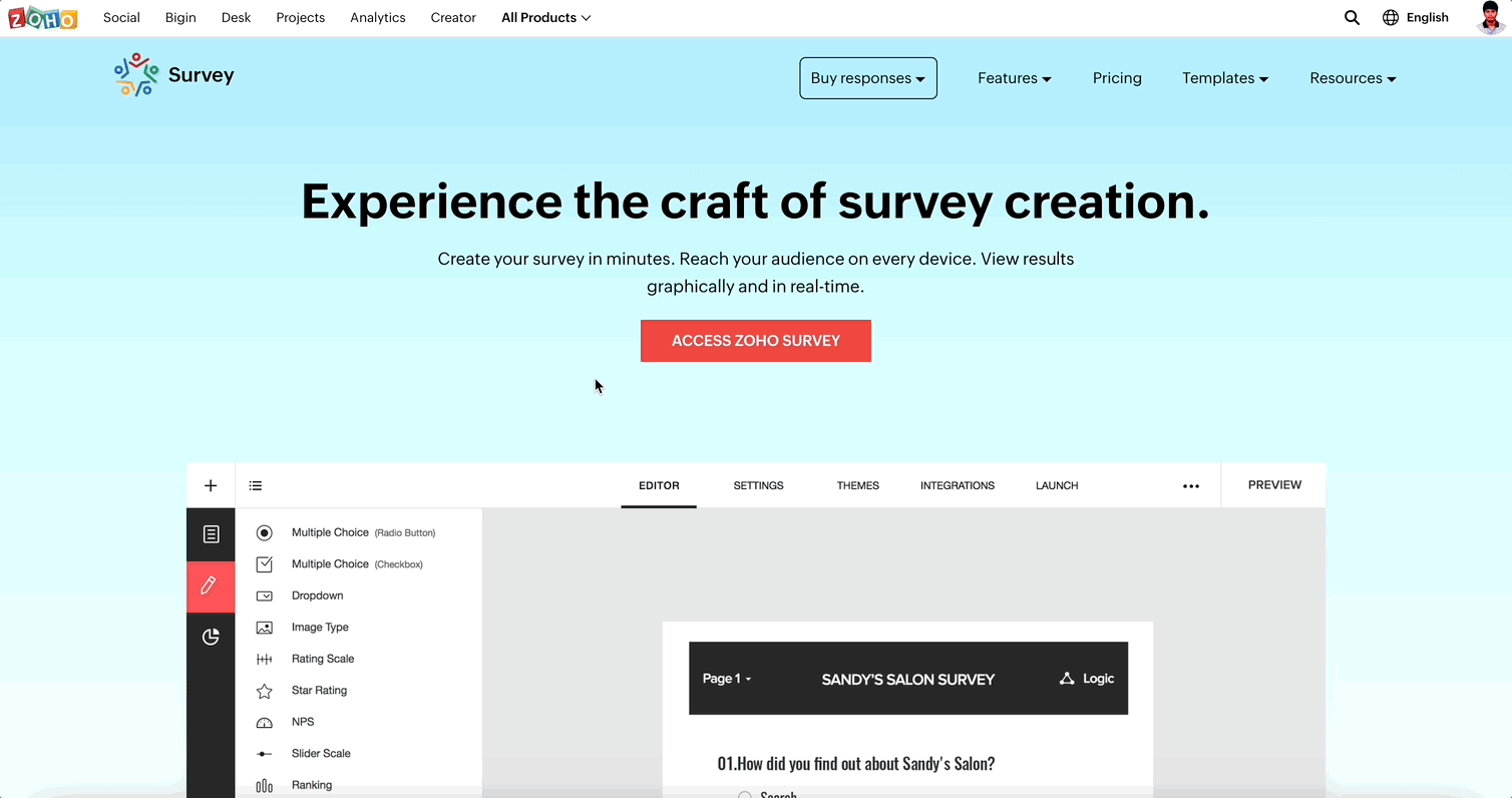 Zoho Surveyで作成したアンケートは、Zoho Sitesのウェブサイトに追加することができます。