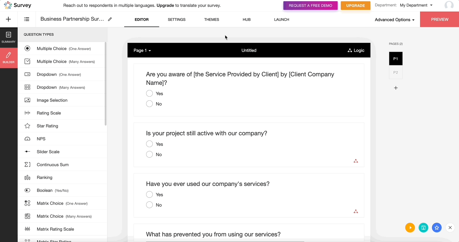 1. アンケートの設計が完了したら、LAUNCHタブをクリックしてください。