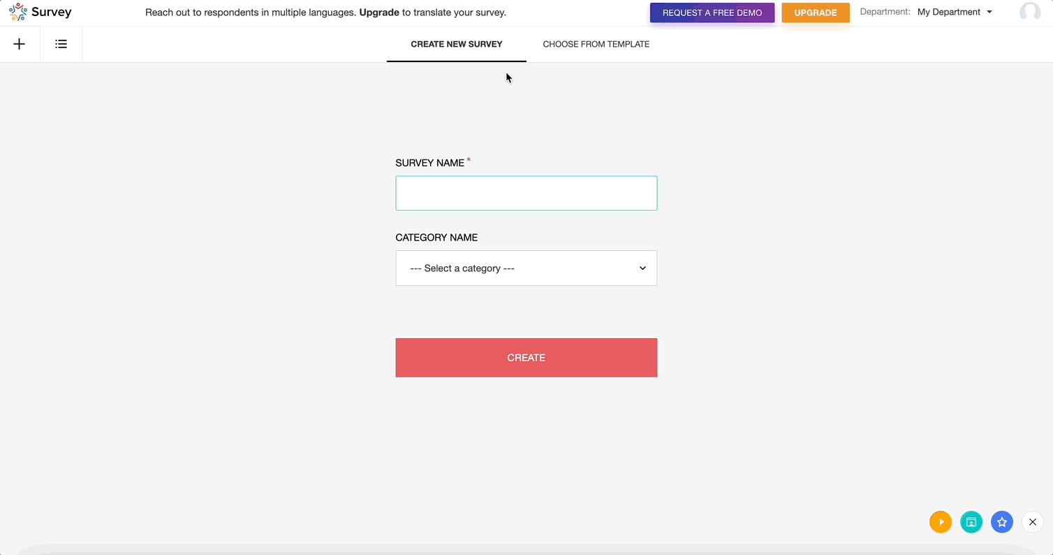 3. CREATE NEW SURVEYまたはCHOOSE FROM TEMPLATEのいずれかを選択します。