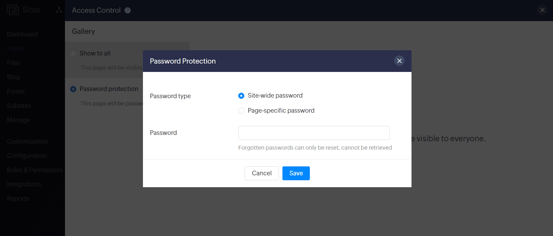 パスワード保護されたページでは、訪問者はページを閲覧する際にパスワードの入力が求められます。