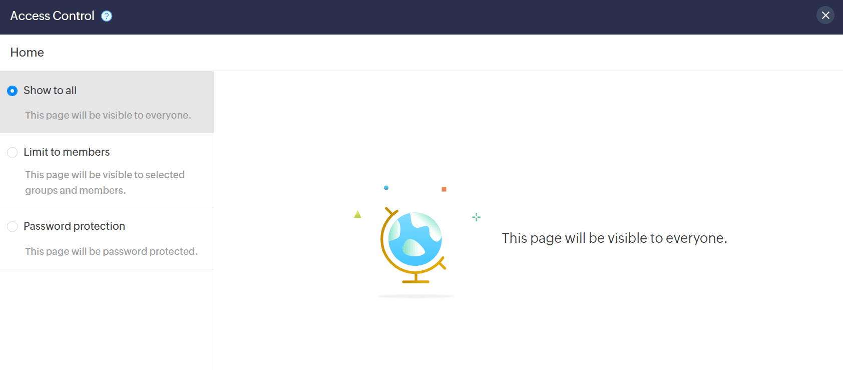 すべてに表示 - 初期設定で選択されています。誰でもページを閲覧できます。