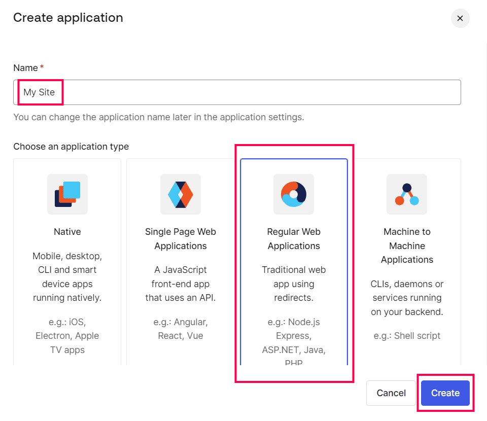 5. アプリケーションの種類を選択します。標準の種類は通常 Web アプリケーションです。