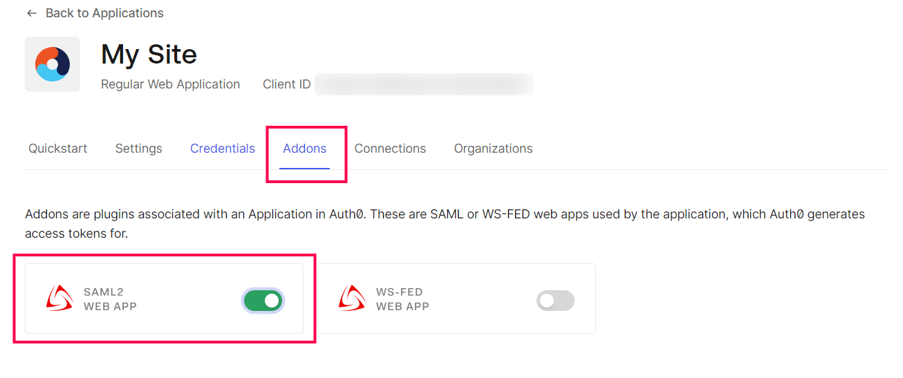 11. オプションタブをクリックし、SAML2 Web Appトグルを有効にします。