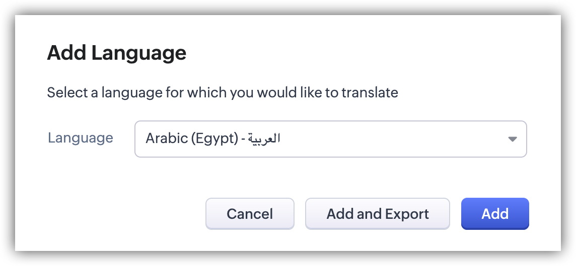 - In the Translations page, click Add Language.