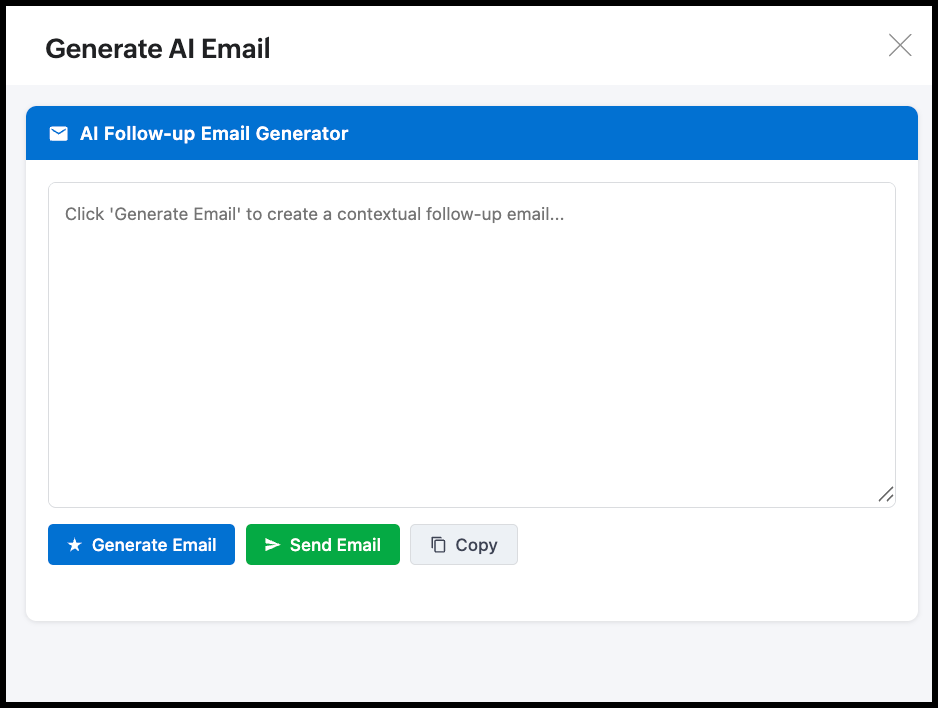 Our AI generator automates this. It scans the lead's details (name, company, status) and the three most recent notes, then prompts an AI model for a draft.