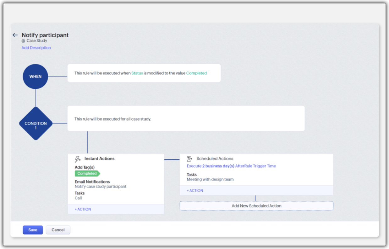 • An assignment rule to assign enterprise case studies to marketing managers automatically