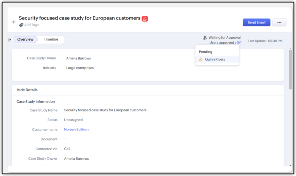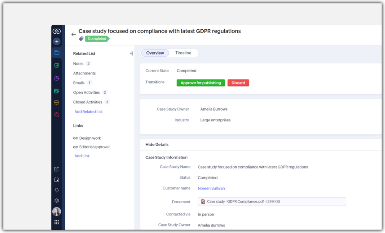 This entire loop of requests and coordination between teams to meet a common goal is woven into the CRM interface as an integral part of the system, thus eliminating communication silos. This also puts us a good step closer to improving the adoption of CRM by several teams across the organization.