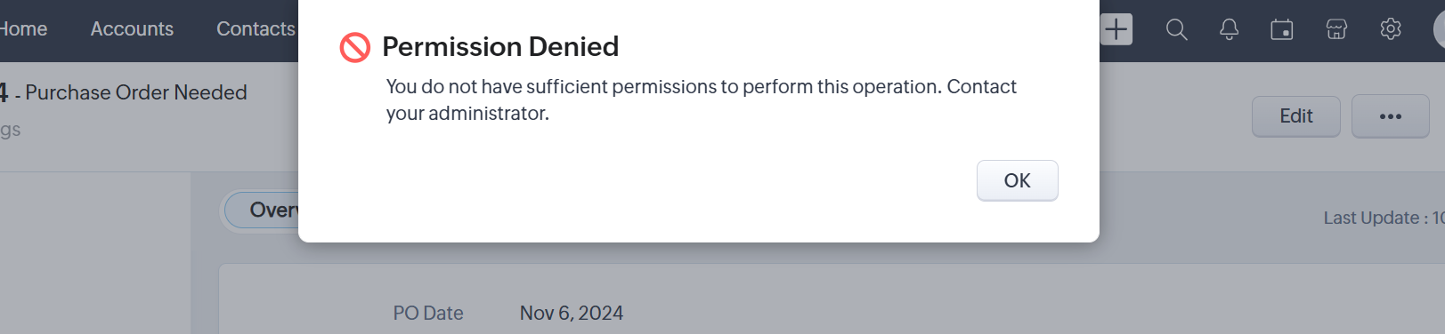 My logistics team account is unable to access the Purchase Orders module even though the permissions are public.
