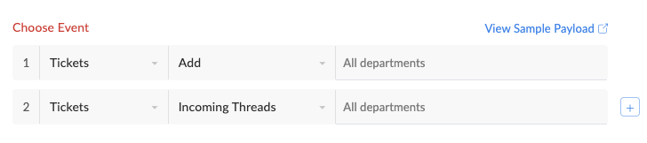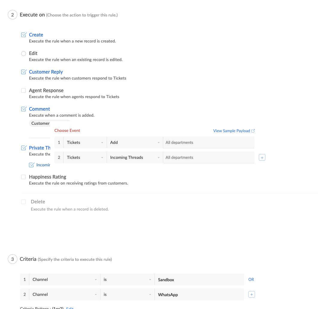 2. I want to get a trigger when a new message is received via the "Sandbox" channel. I have tried setting up a webhook, but it is not triggered when a new message is received. It is triggered neither when a ticket is automatically created from a Sandbox message, nor when a message is received via Sandbox.