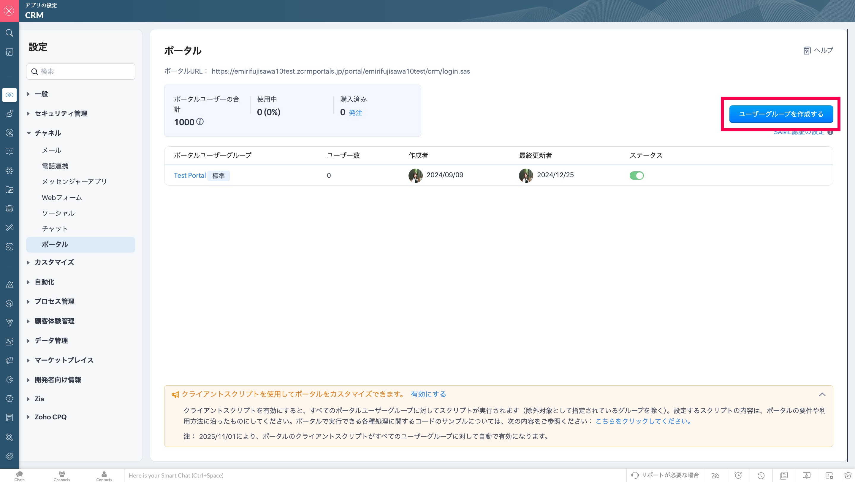 また、「ポータルユーザーの種類」は今後、「ユーザーグループ」と呼称され、ページ上のボタンも「ユーザーグループを作成する」に変更されます。