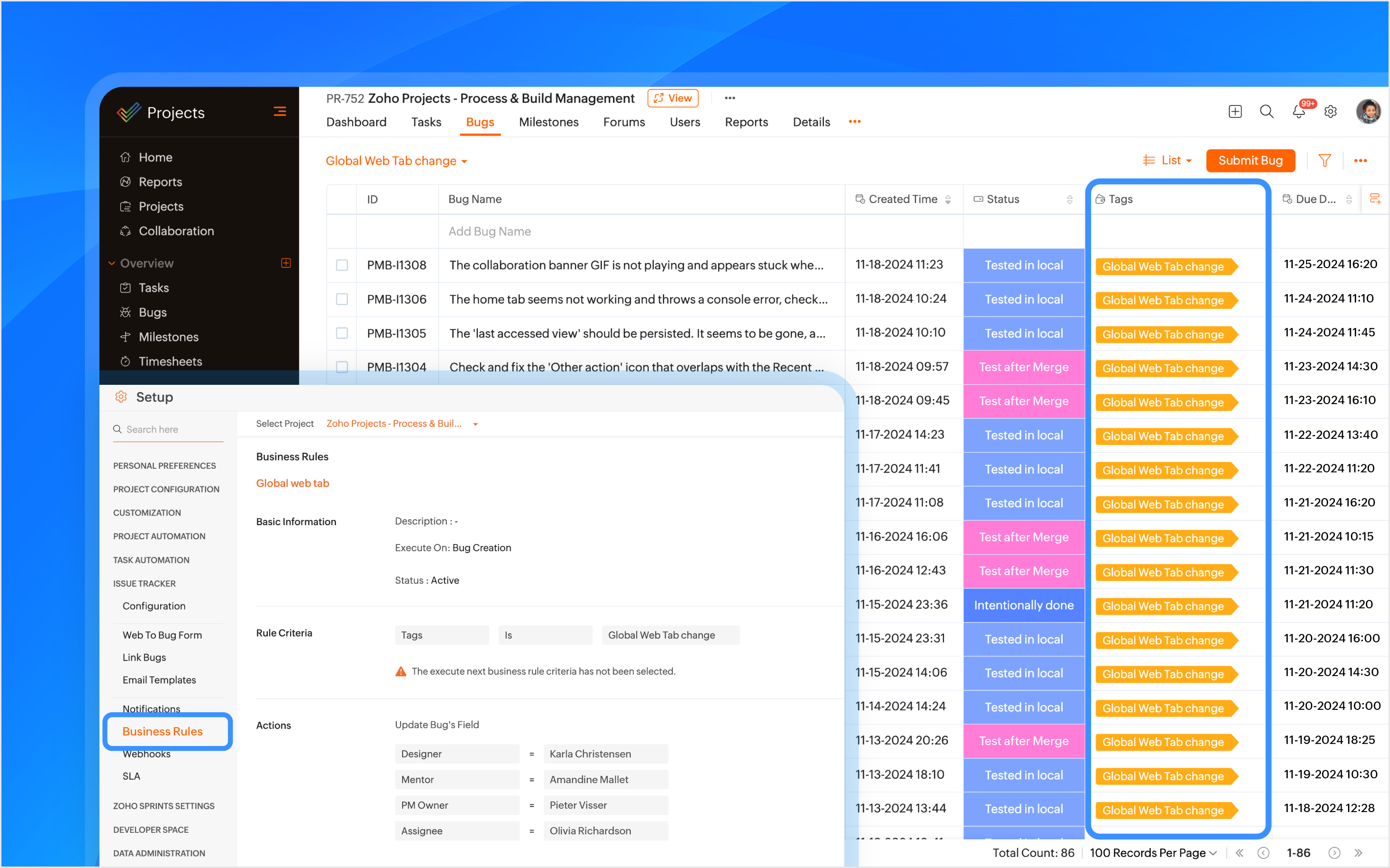 Effective issue management is a cornerstone of project success. Every bug or issue, no matter how small, needs to be tracked and resolved in time to maintain project momentum. In this post, we’ll explore how an issue management system in Zoho Projects is used to manage issues in our own product management process.