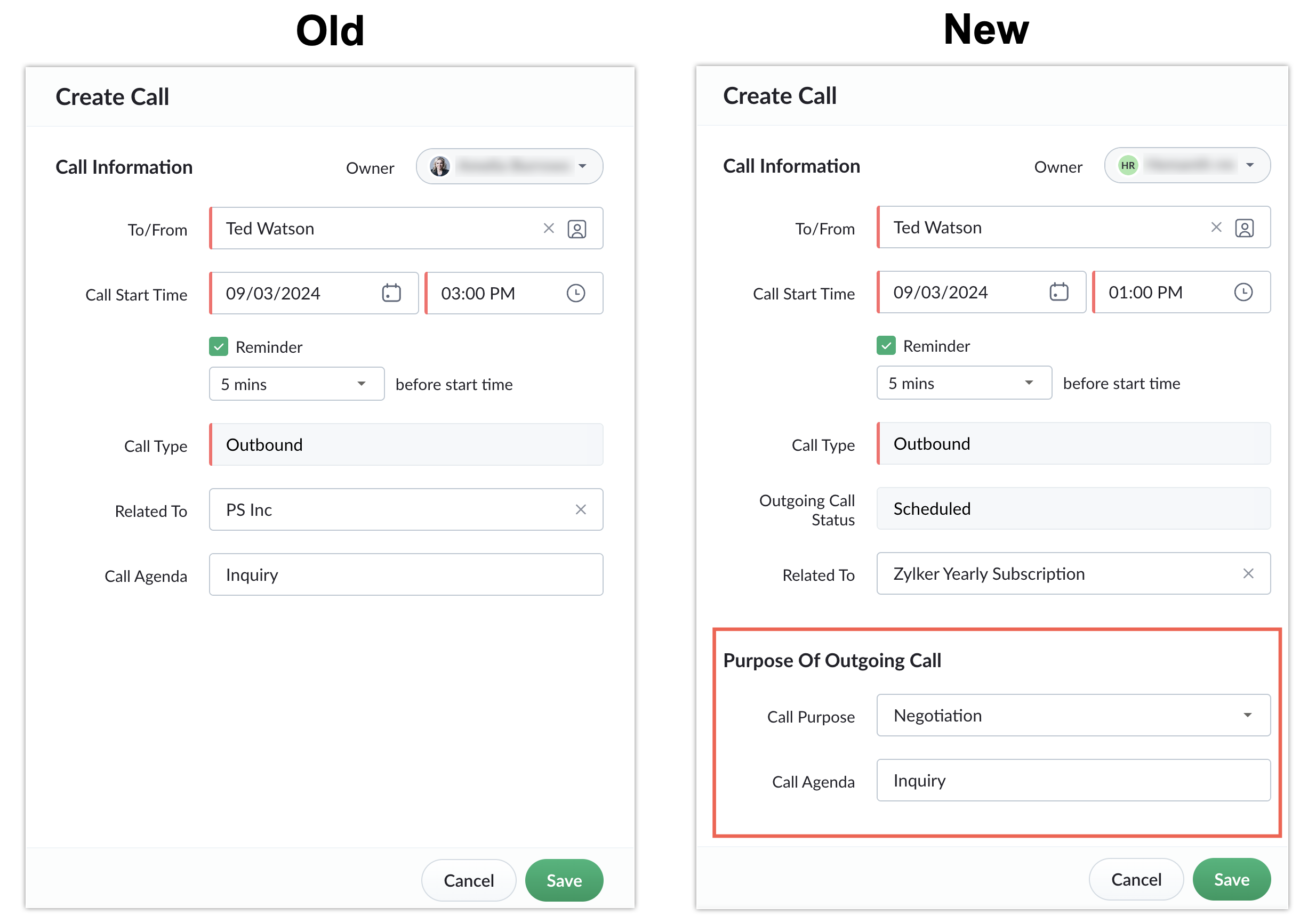 This update includes three new sections and six additional fields that offer better clarity and organization while logging or scheduling calls. The new structure enables you to manage calls more effectively by grouping information based on call type and status.