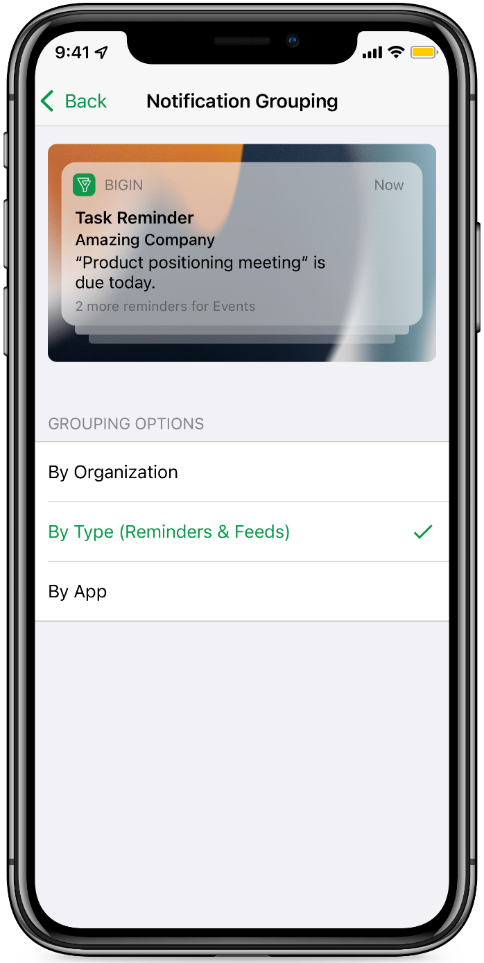 In the latest version of the Bigin iOS app users can customize notifications based on their requirement. Please find the different customizations below: